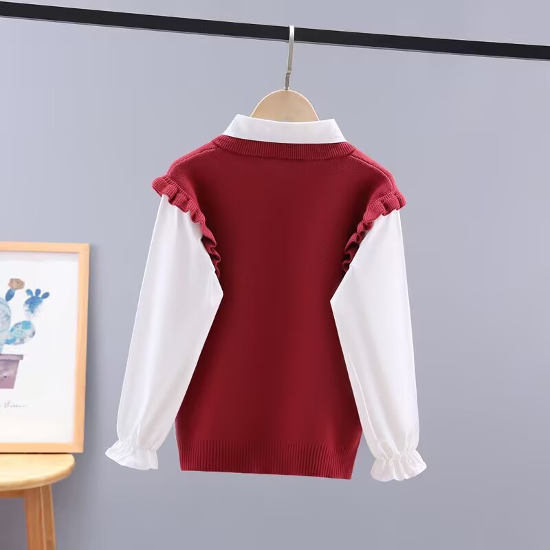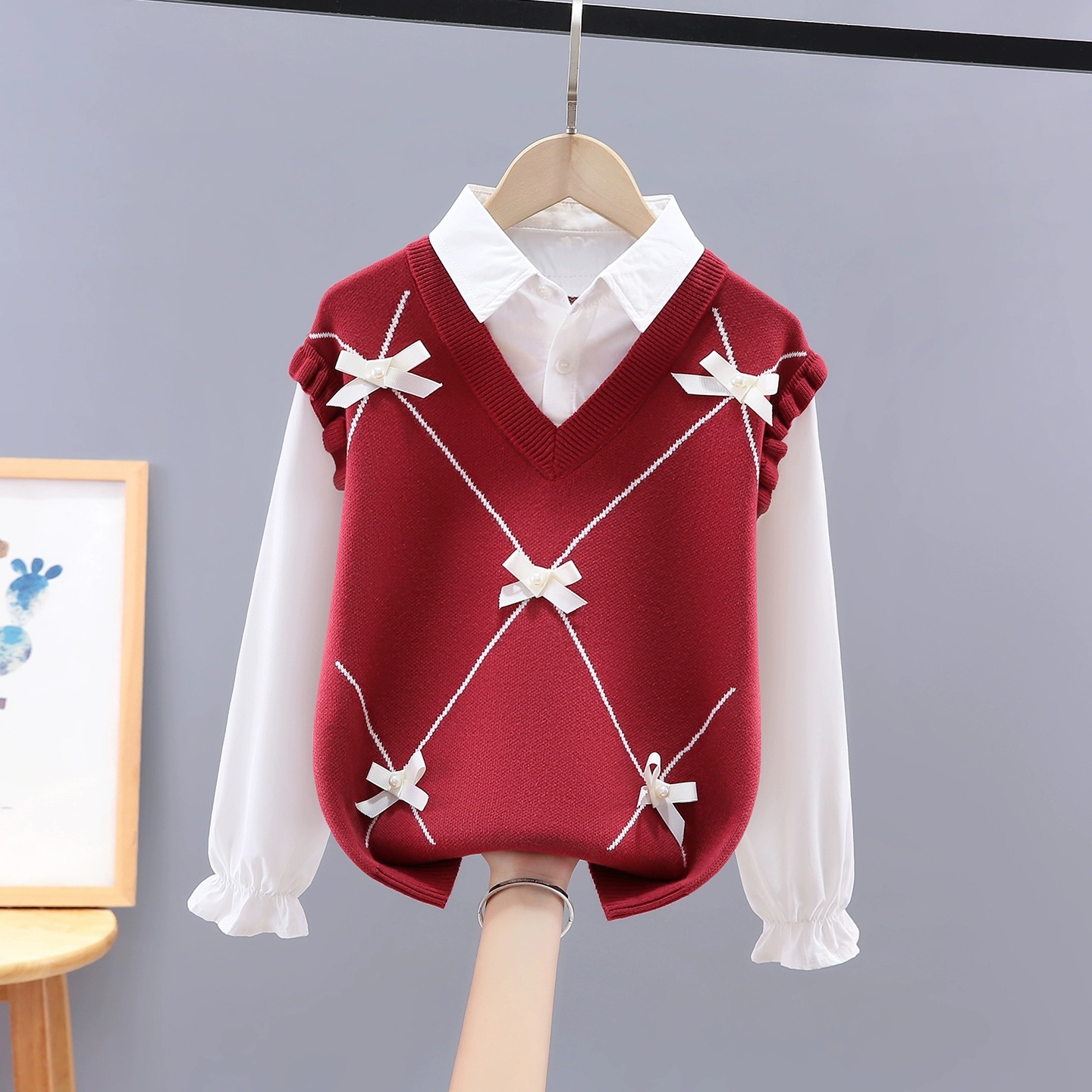 女童韩系毛衣假两件春秋新款儿童针织衫背心中大童学院风百搭