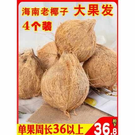 4个装海南新鲜老椰子超大果椰子牛奶毛椰去皮椰青椰皇椰子鸡配料
