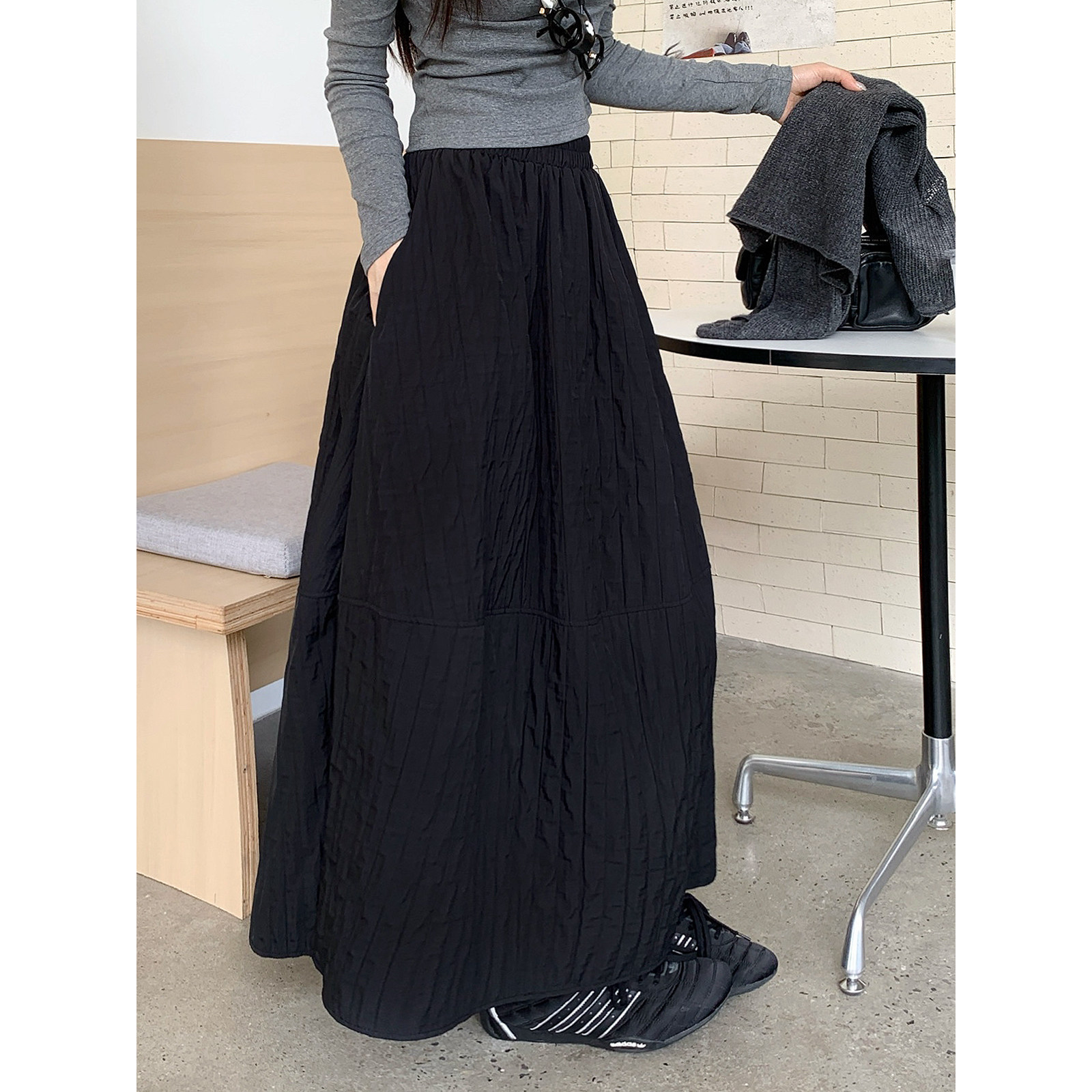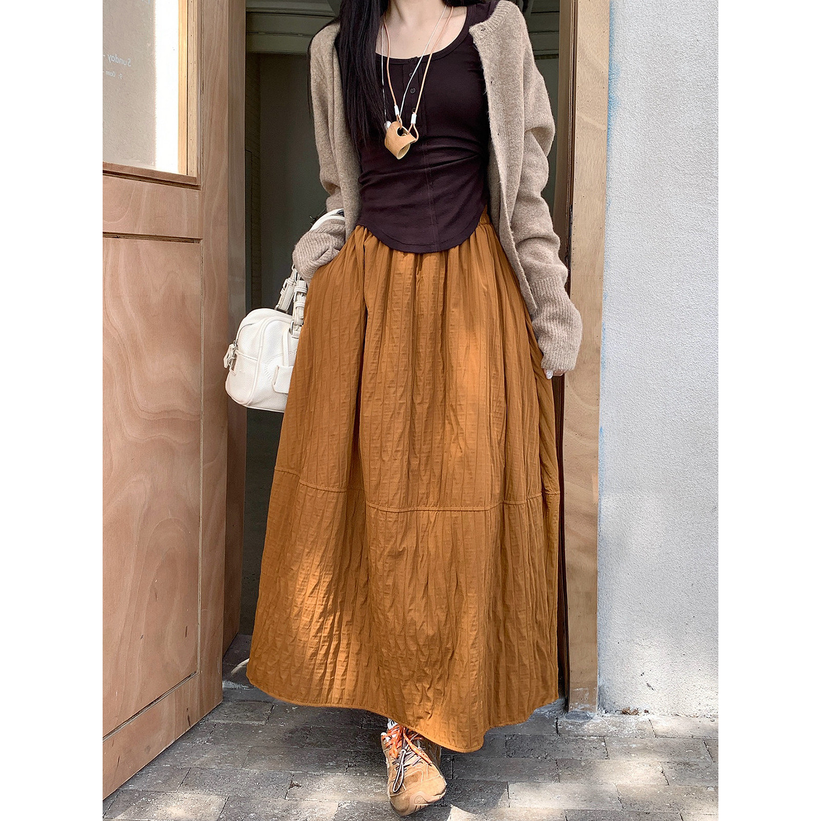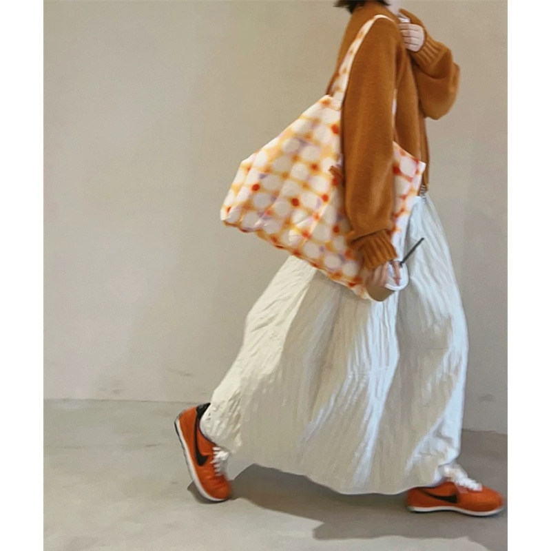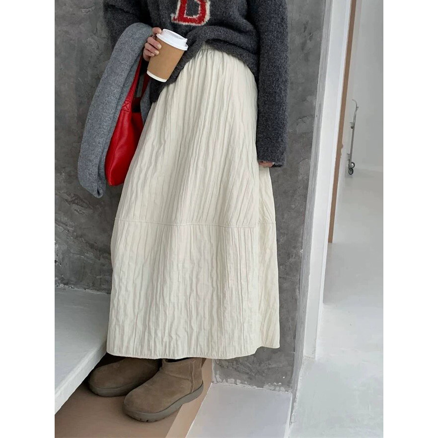 日系文艺绗线保暖半身裙女秋冬大码胖mm梨形身材中长款a字伞裙子