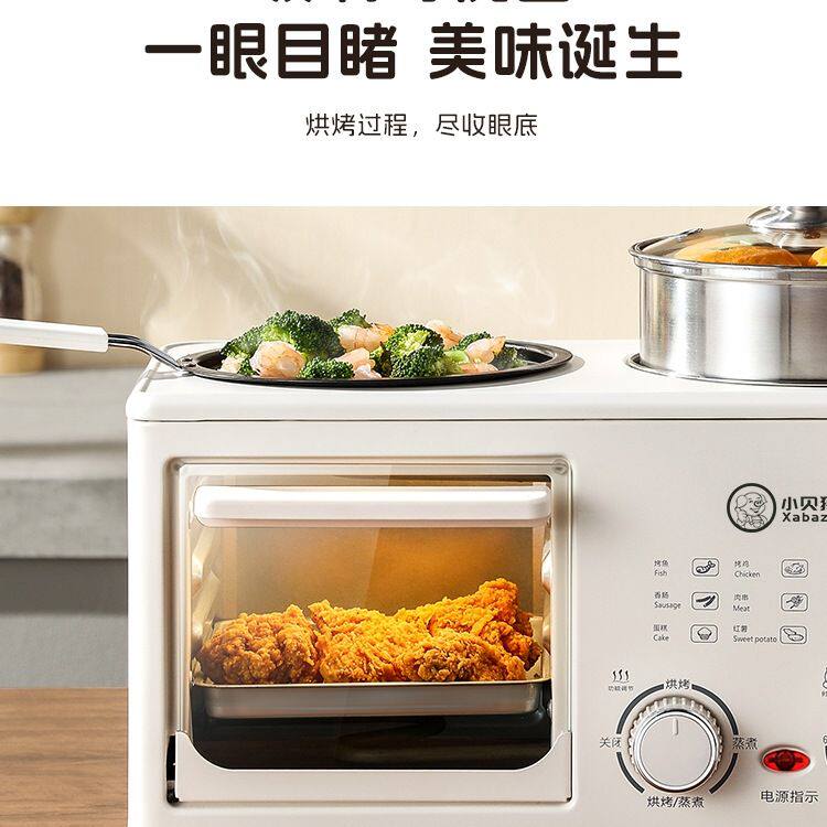 懒人四合一早餐机家用多功能煎牛排烤面包煎烤蒸煮锅小烤箱
