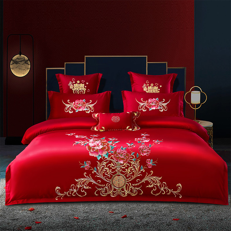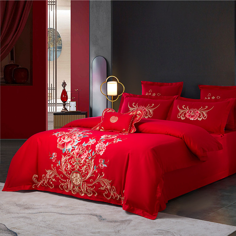 品牌红色婚庆长绒棉四件套陪嫁