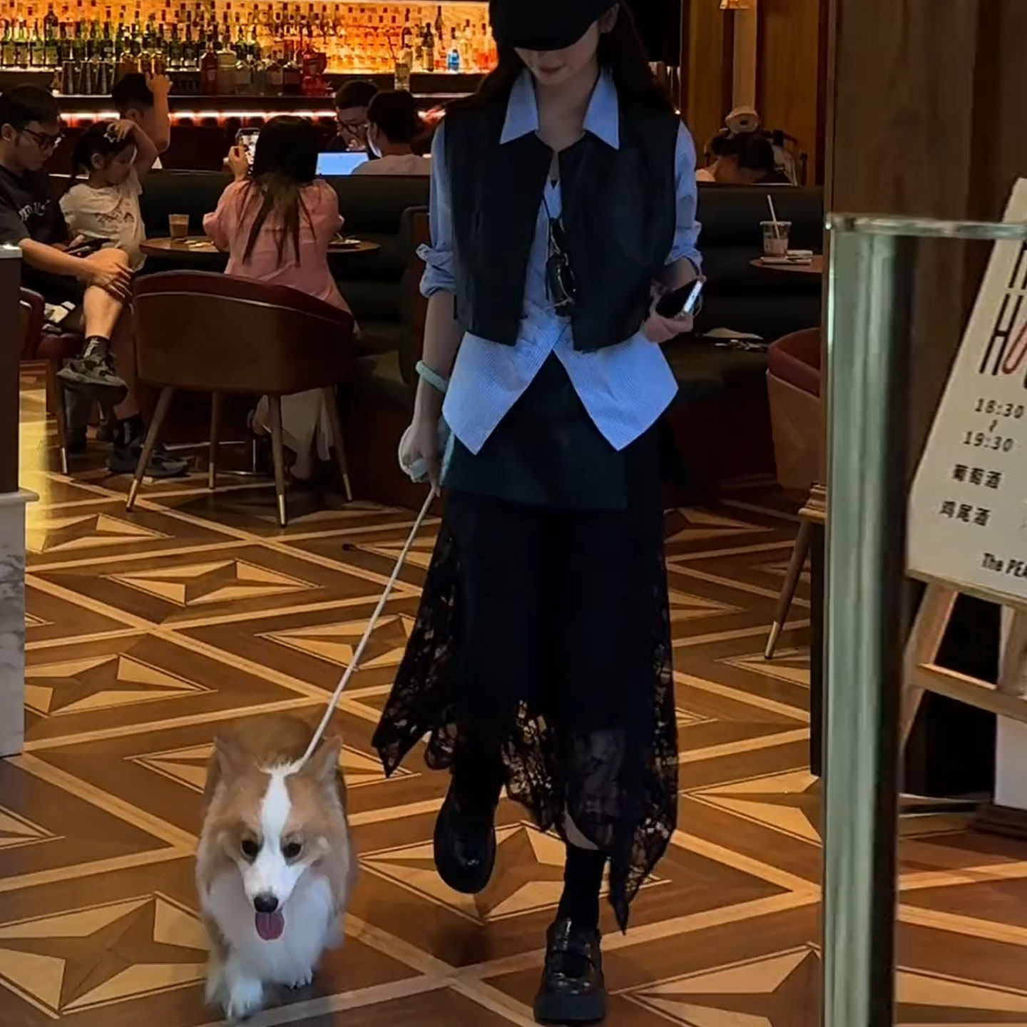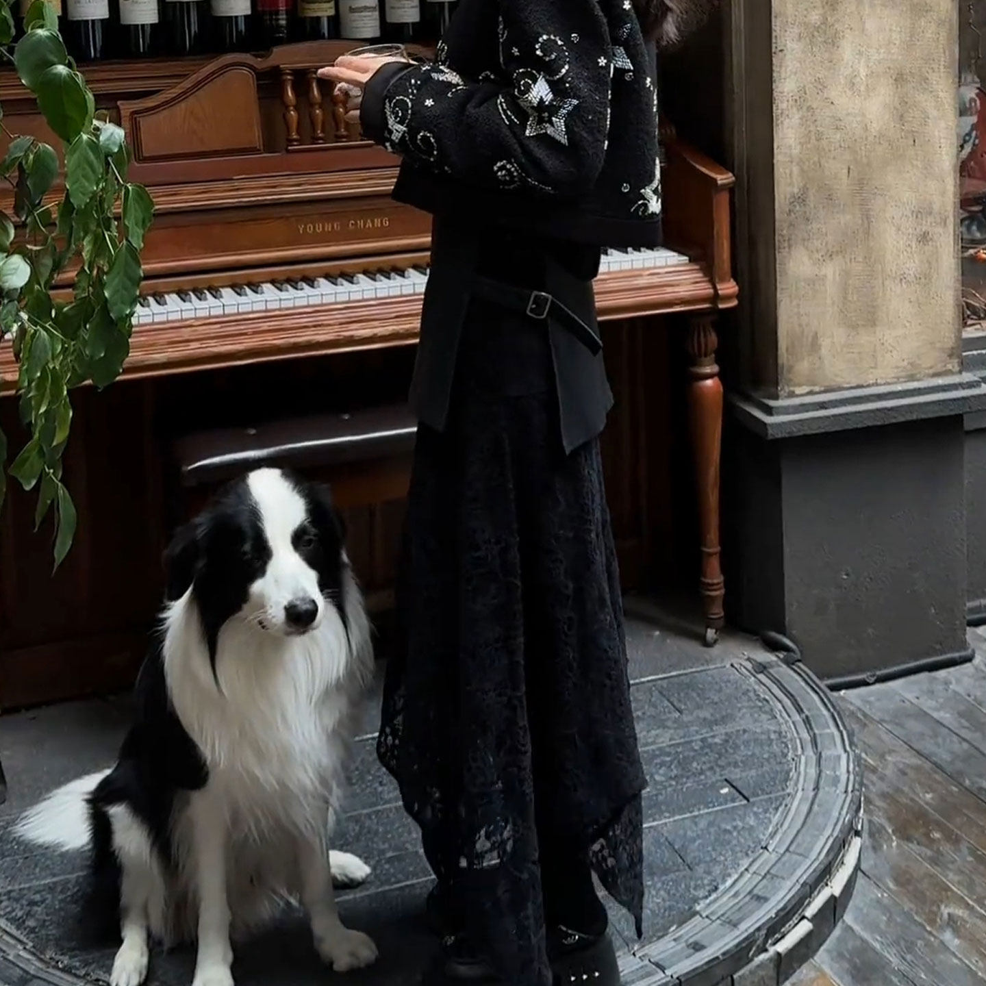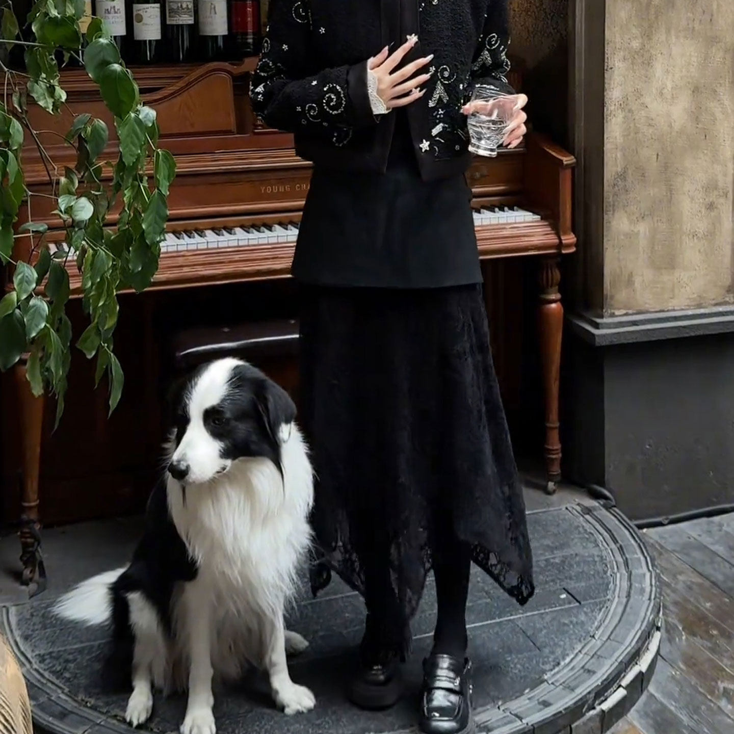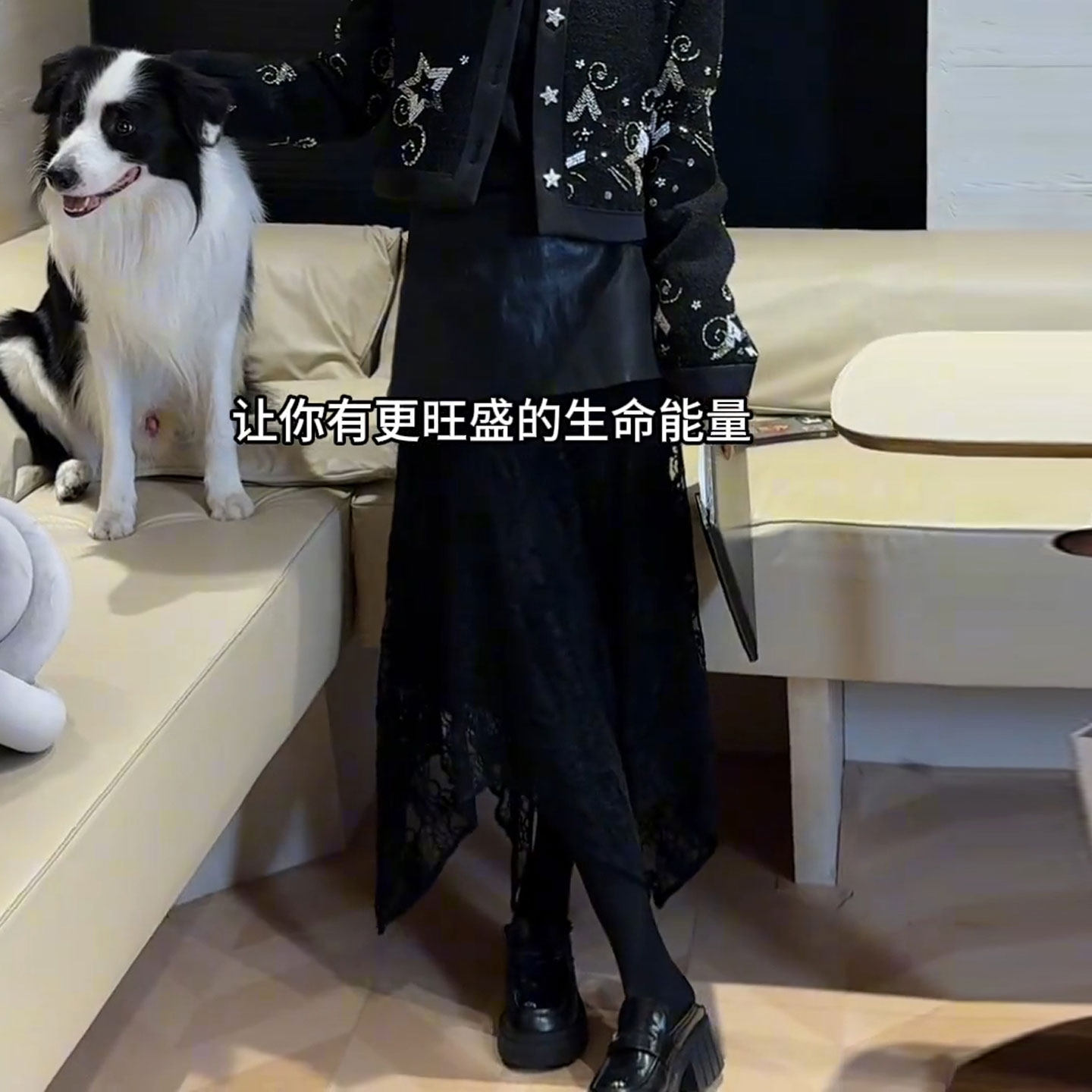 黑色蕾丝拼接半身裙女2026春季流行爆款高腰显瘦不规则设计a字裙