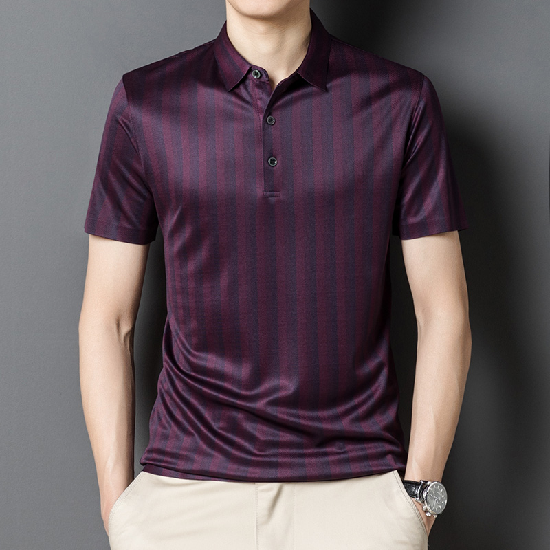 1款5色时尚都市桑蚕丝混纺商务翻领短袖T恤男夏季新款体恤 赫祖丁