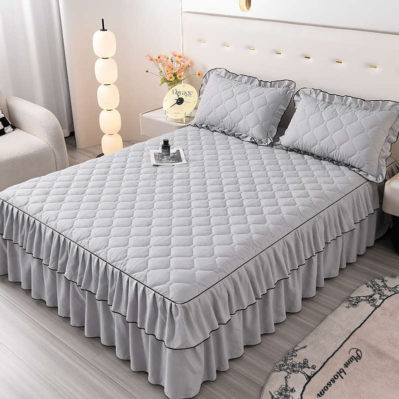 夹棉床裙纯色单件床罩加棉床单带裙边加枕套三件套床垫防滑保护套