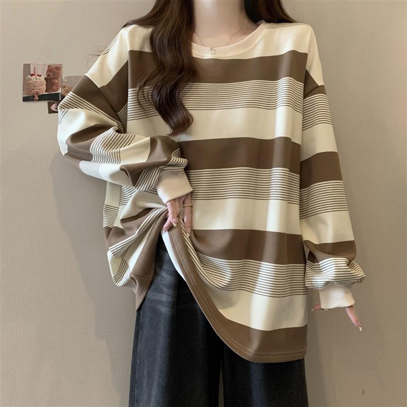 2025条纹圆领套头薄款宽松女款时尚撞色休闲风春秋卫衣春季女上衣
