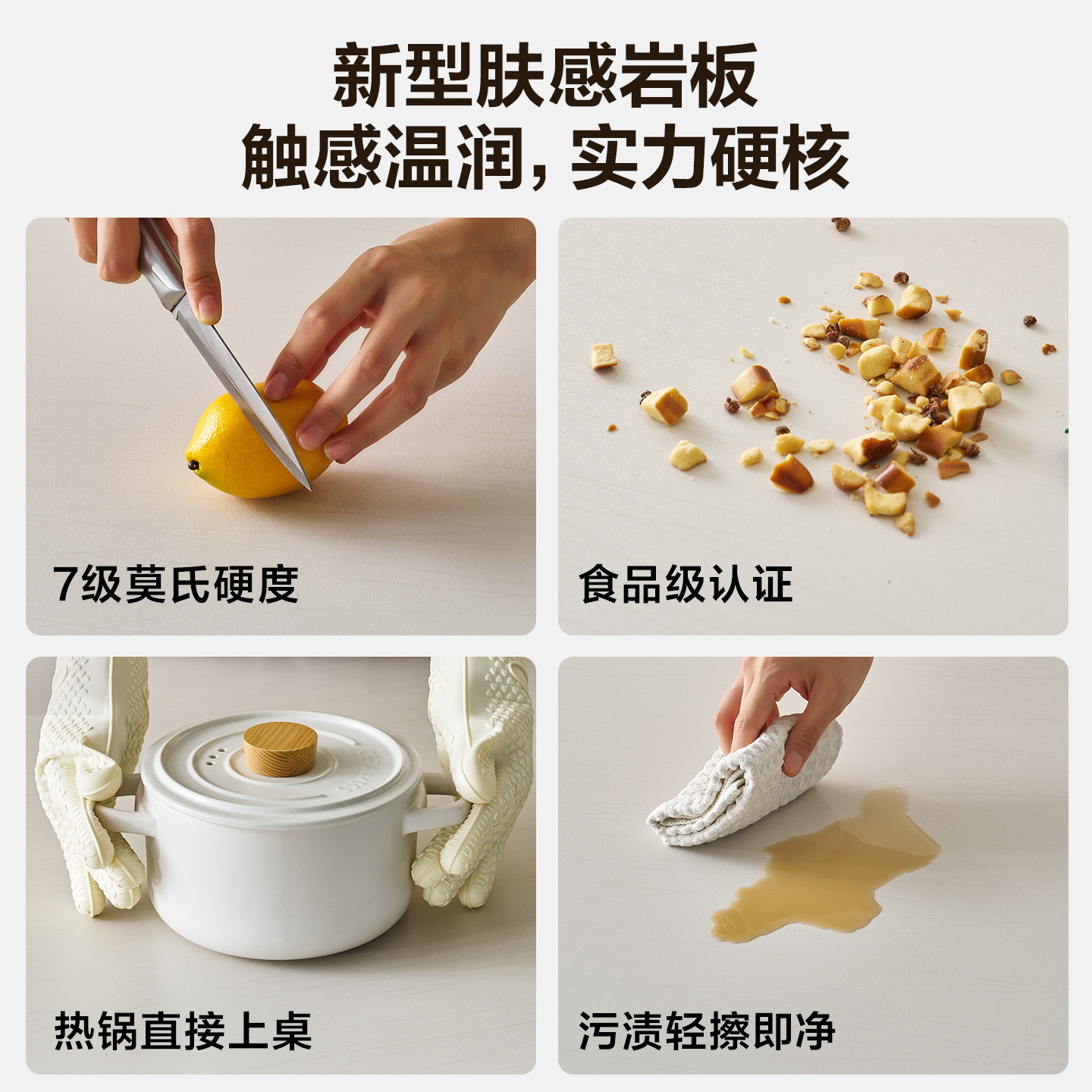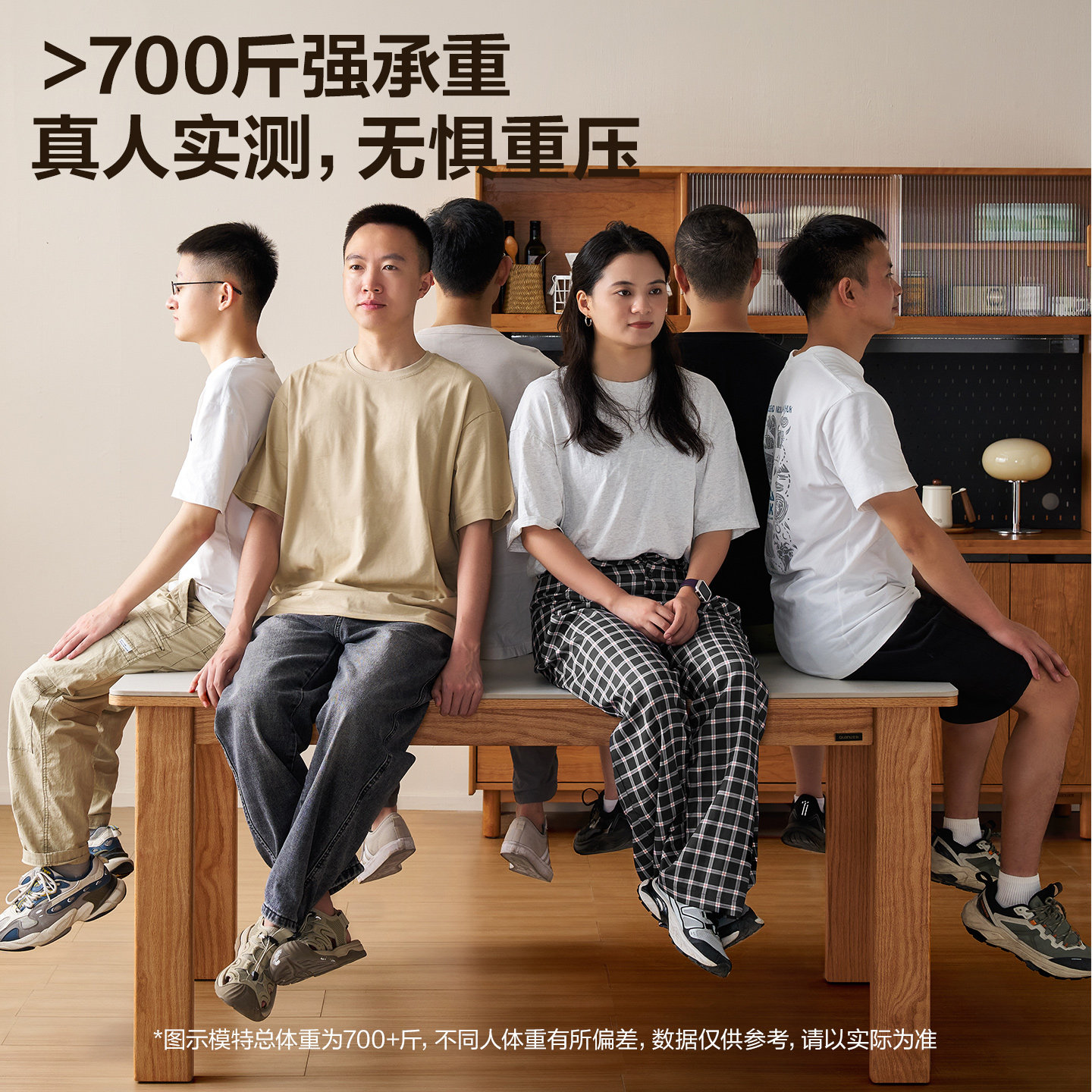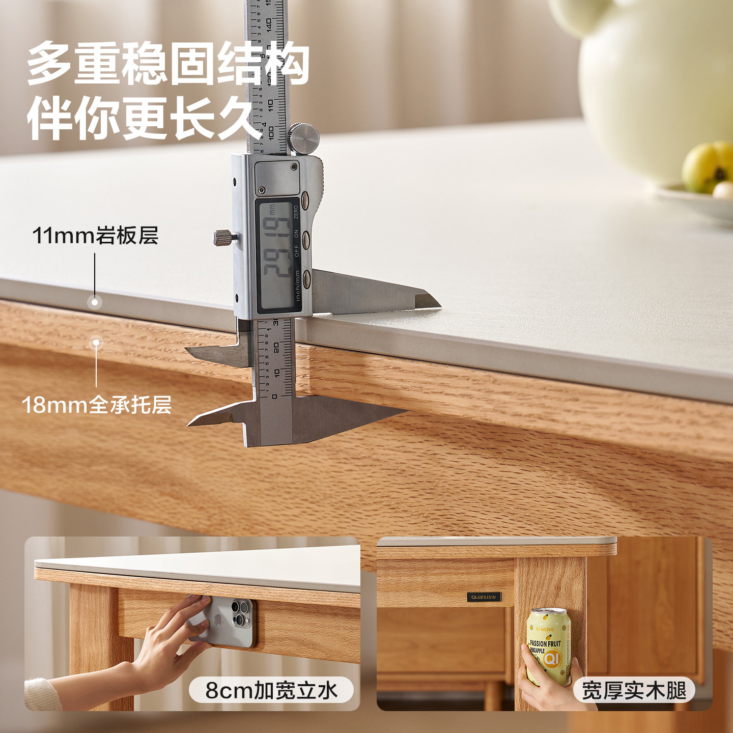 全友家居原木风客厅家用小户型岩板餐桌实木腿长方形饭桌2025新款