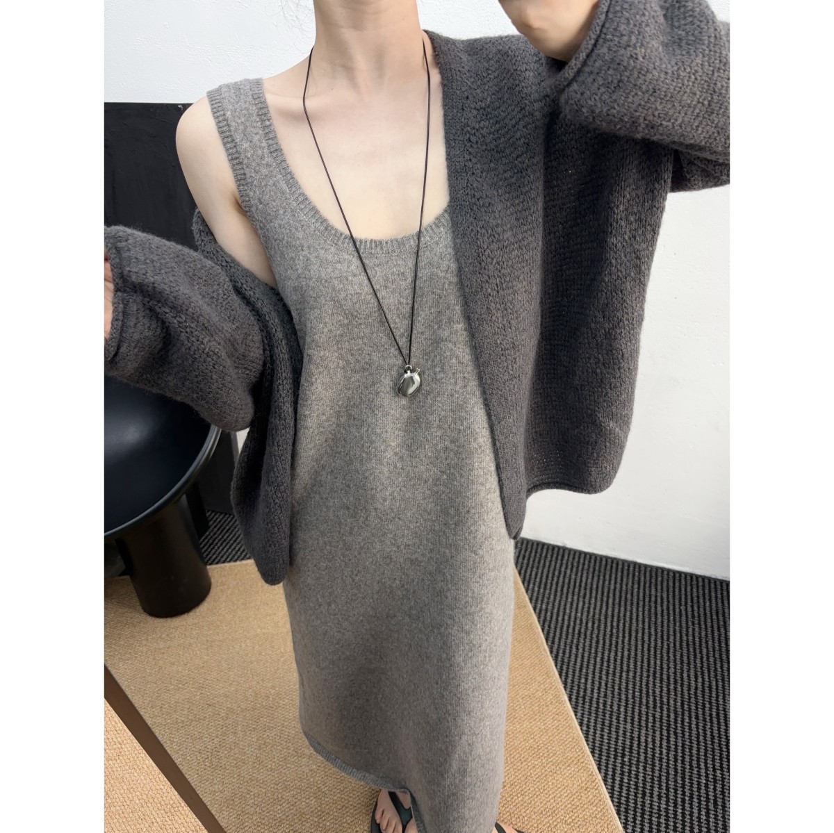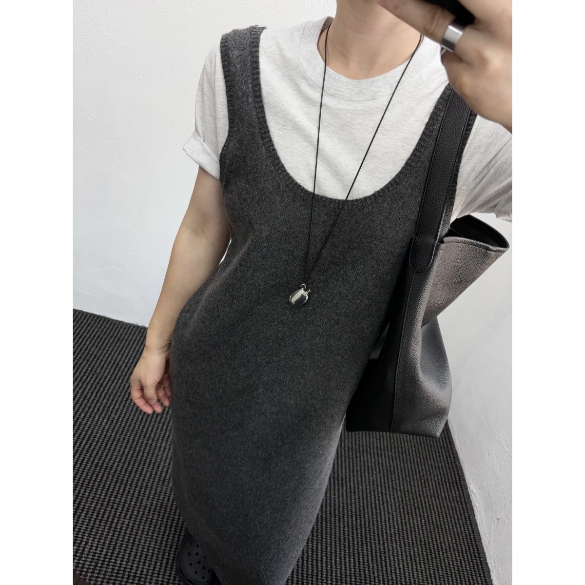 秋冬加厚毛衣背心裙格雷系羊毛混纺无袖连衣裙2025叠穿打底裙U领