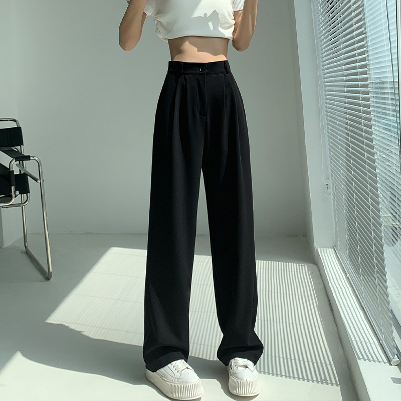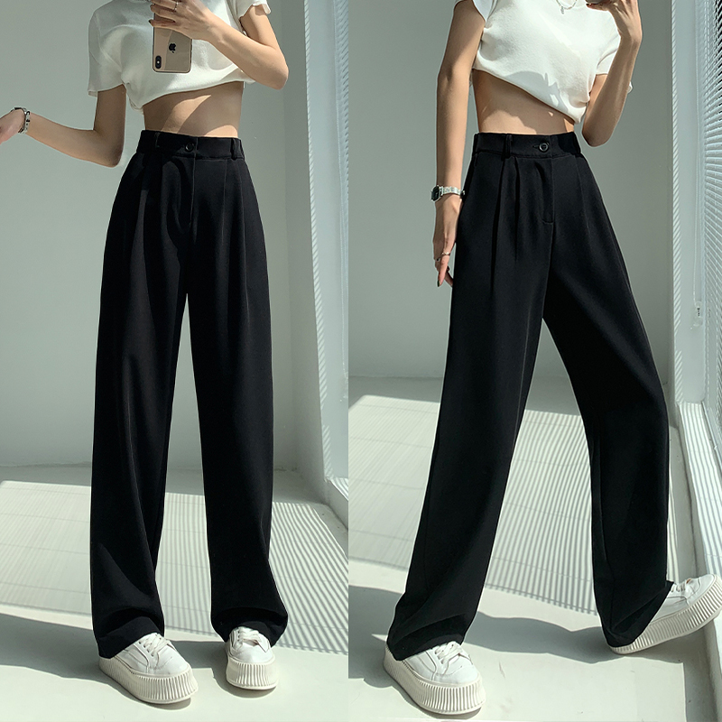 阔腿裤女夏季薄款高腰显瘦垂感梨形身材小个子直筒休闲西装裤