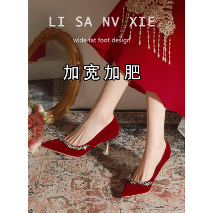 红色高跟鞋胖脚新娘鞋高级感不累脚小码秀禾敬酒服大码婚鞋大码43