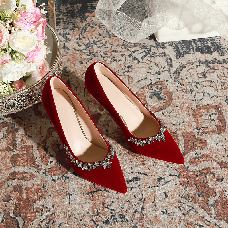 红色高跟鞋胖脚新娘鞋