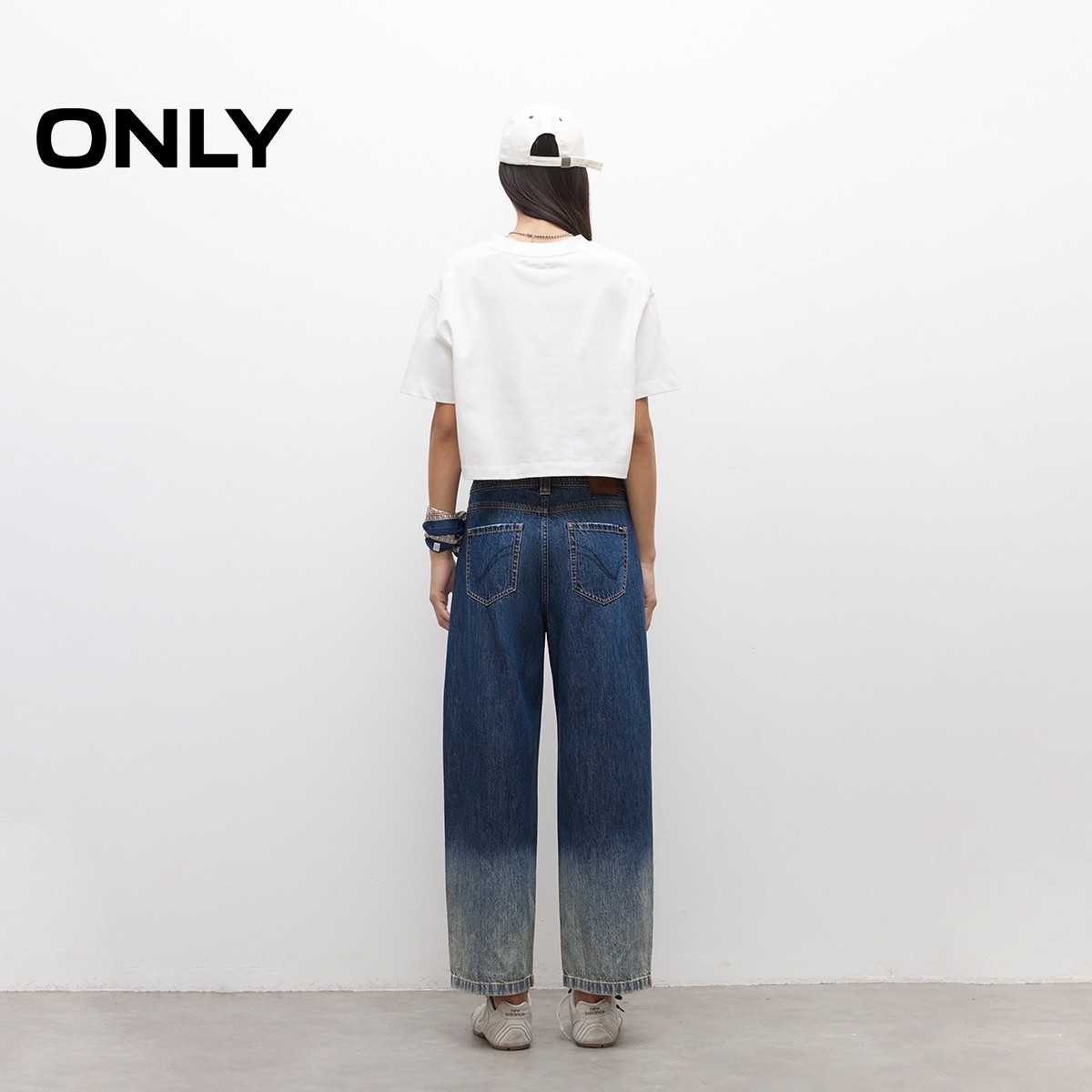 ONLY2025秋冬新款高腰渐变宽松显瘦显高直筒裤七分裤牛仔裤女