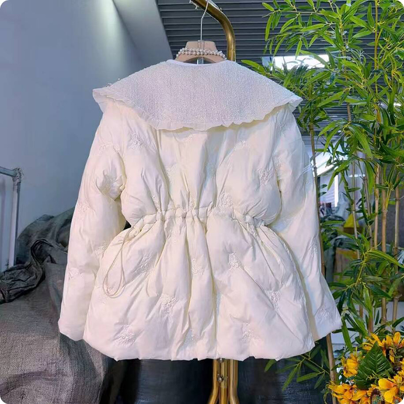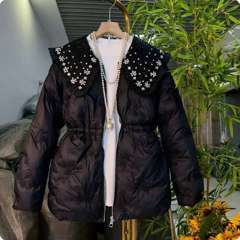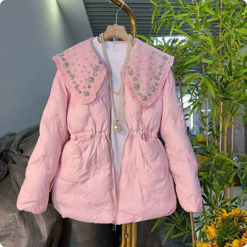 冬季韩系爆款欧货小香风棉服外套胖mm时尚镶钻刺绣娃娃领大码女装