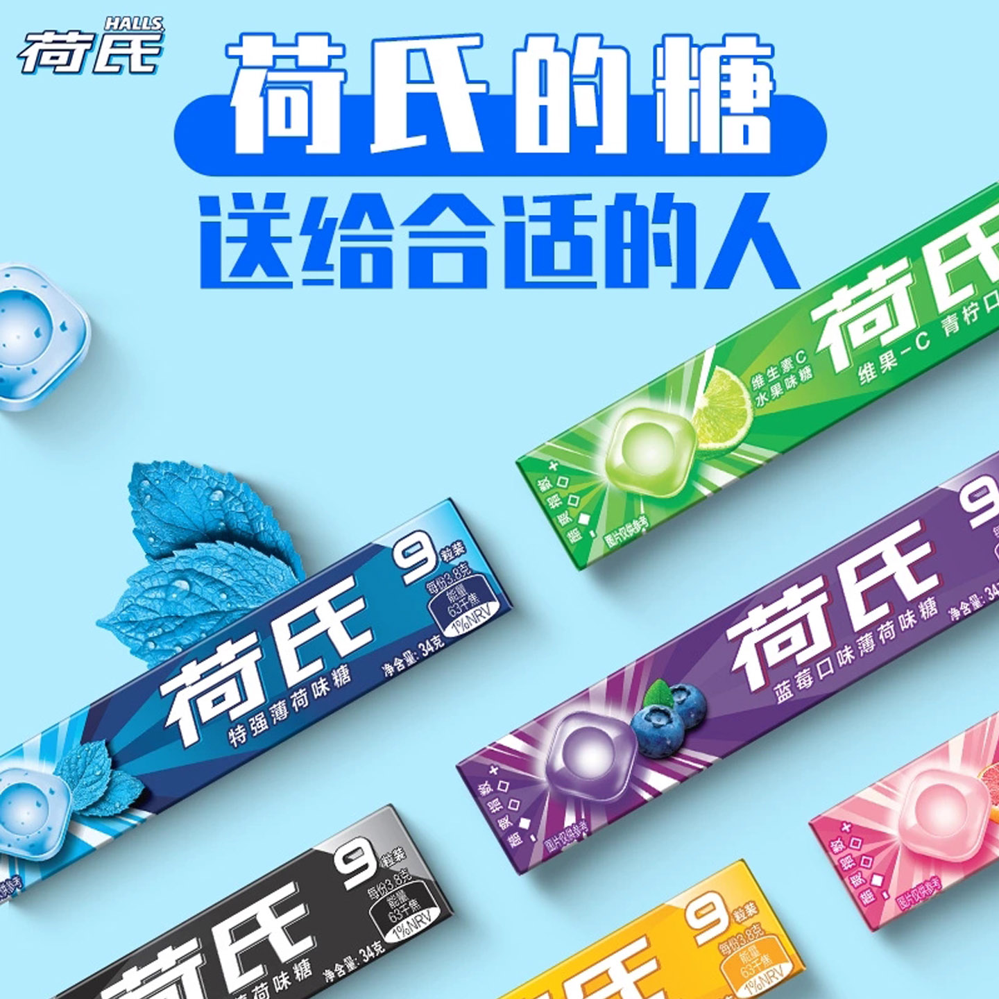 荷氏薄荷糖果午夜风暴34g强劲清凉何氏特强柠檬蓝莓清新口气零食