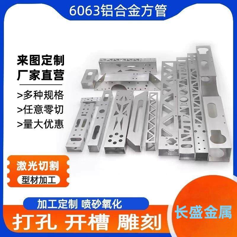 6063铝合金方管激光打孔攻牙开槽高精度阳极氧化CNC高来图定制