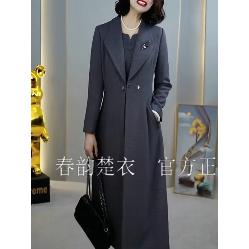 春韵楚衣灰色风衣外套连衣裙子两件套套装裙女春秋新款妈妈高级感