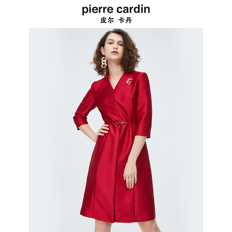 商场同款皮尔卡丹女装新款淑女轻仪式礼服修身连衣裙
