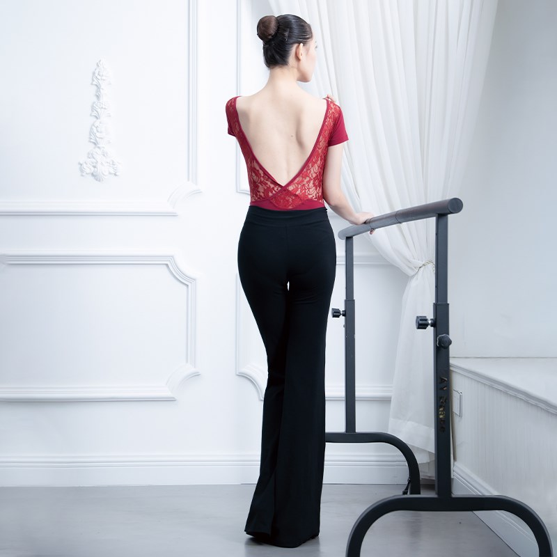 极速现代舞服装女练功服套装V领大蕾丝露K背上衣+裤两件套芭蕾舞