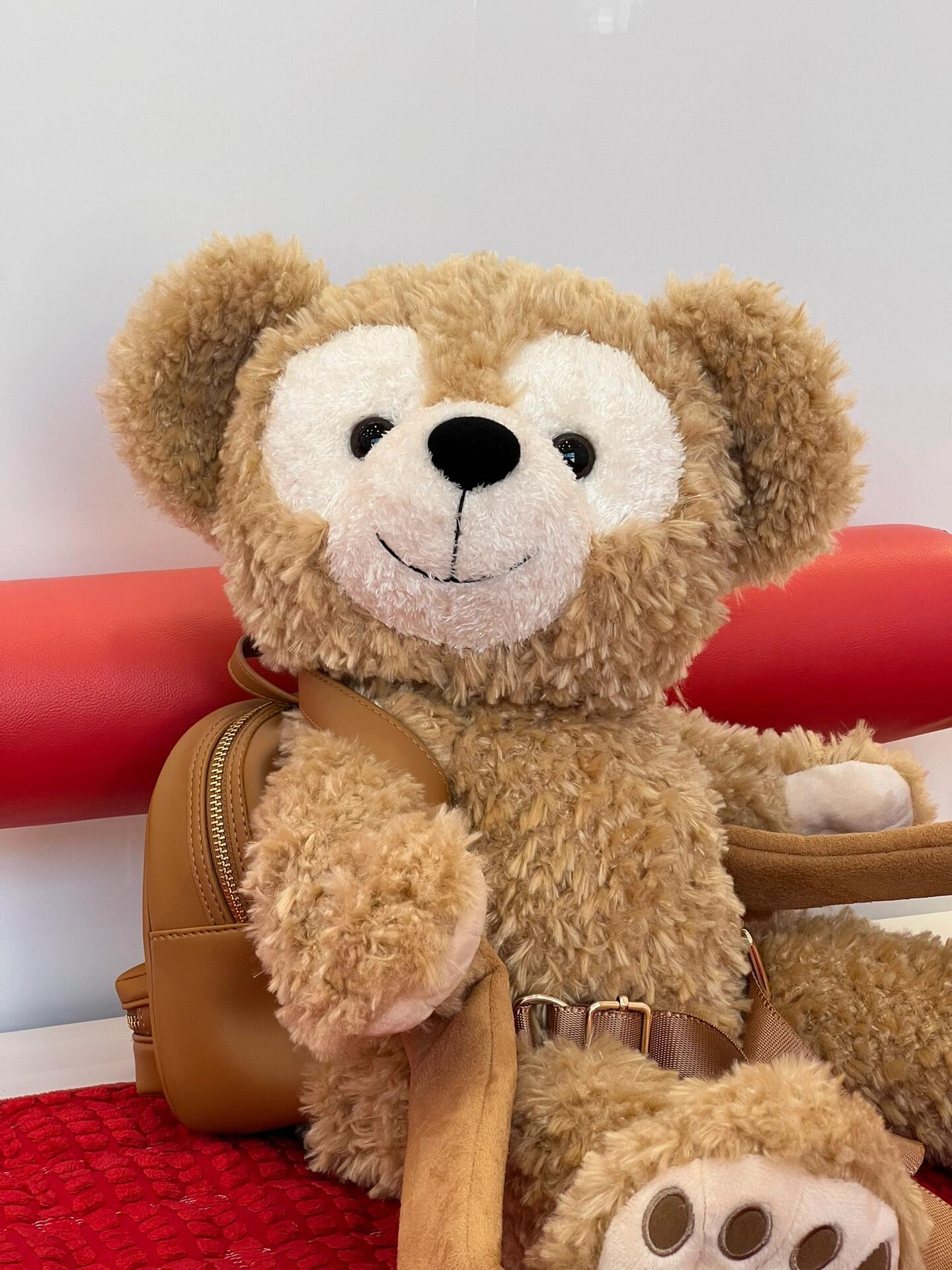 出租迪士尼包包女达菲熊双肩包毛绒公仔玩偶背包少女可爱书包租赁