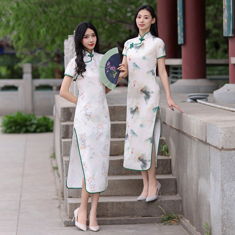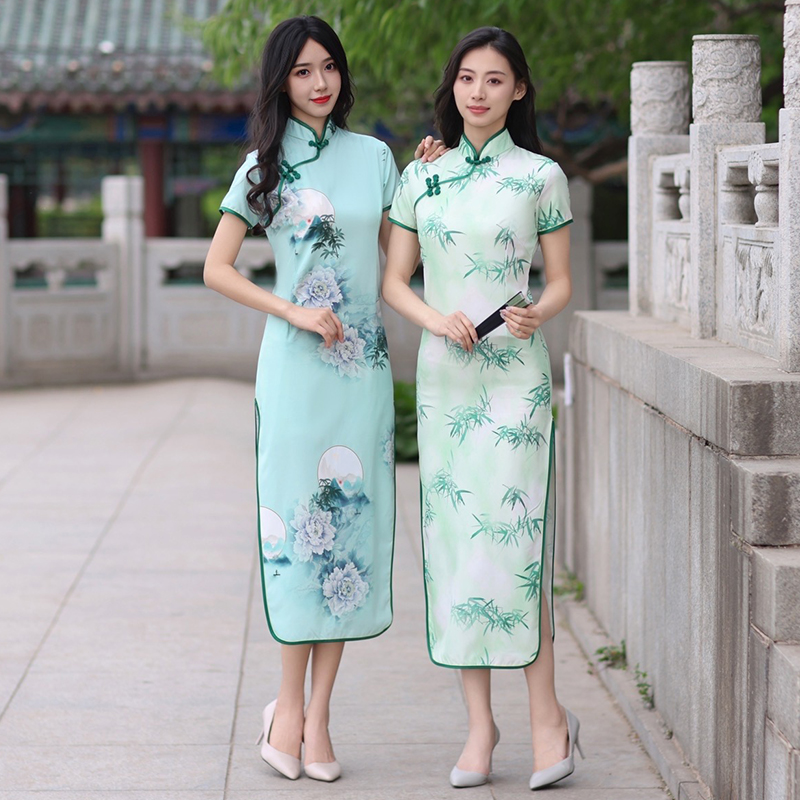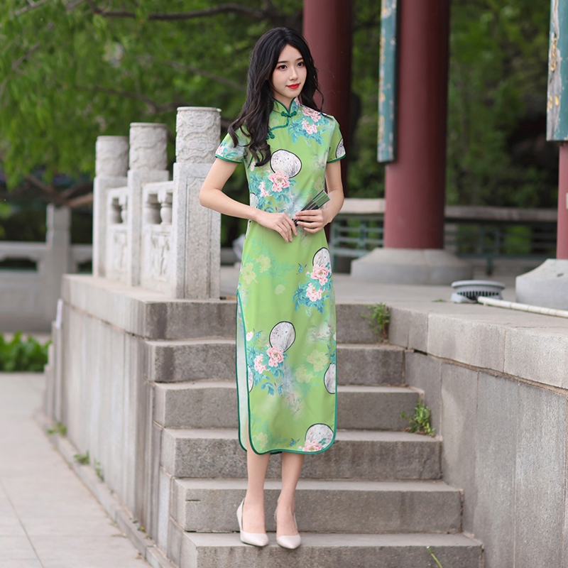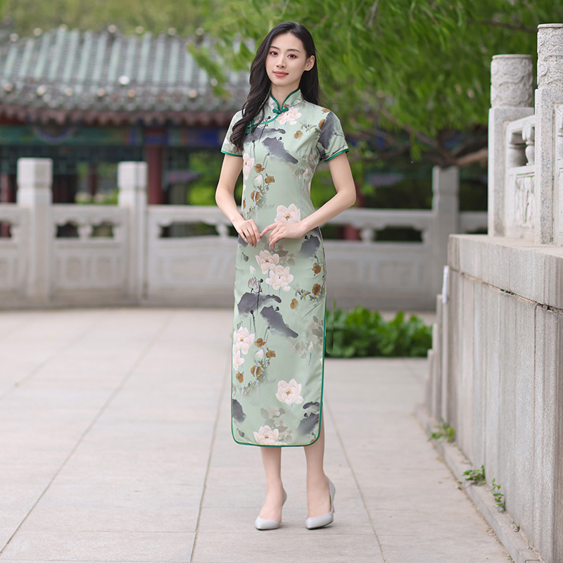 绿色旗袍新中式夏季2024高考送考年轻款妈妈中考旗开得胜日常可穿