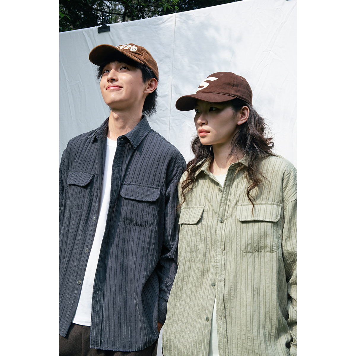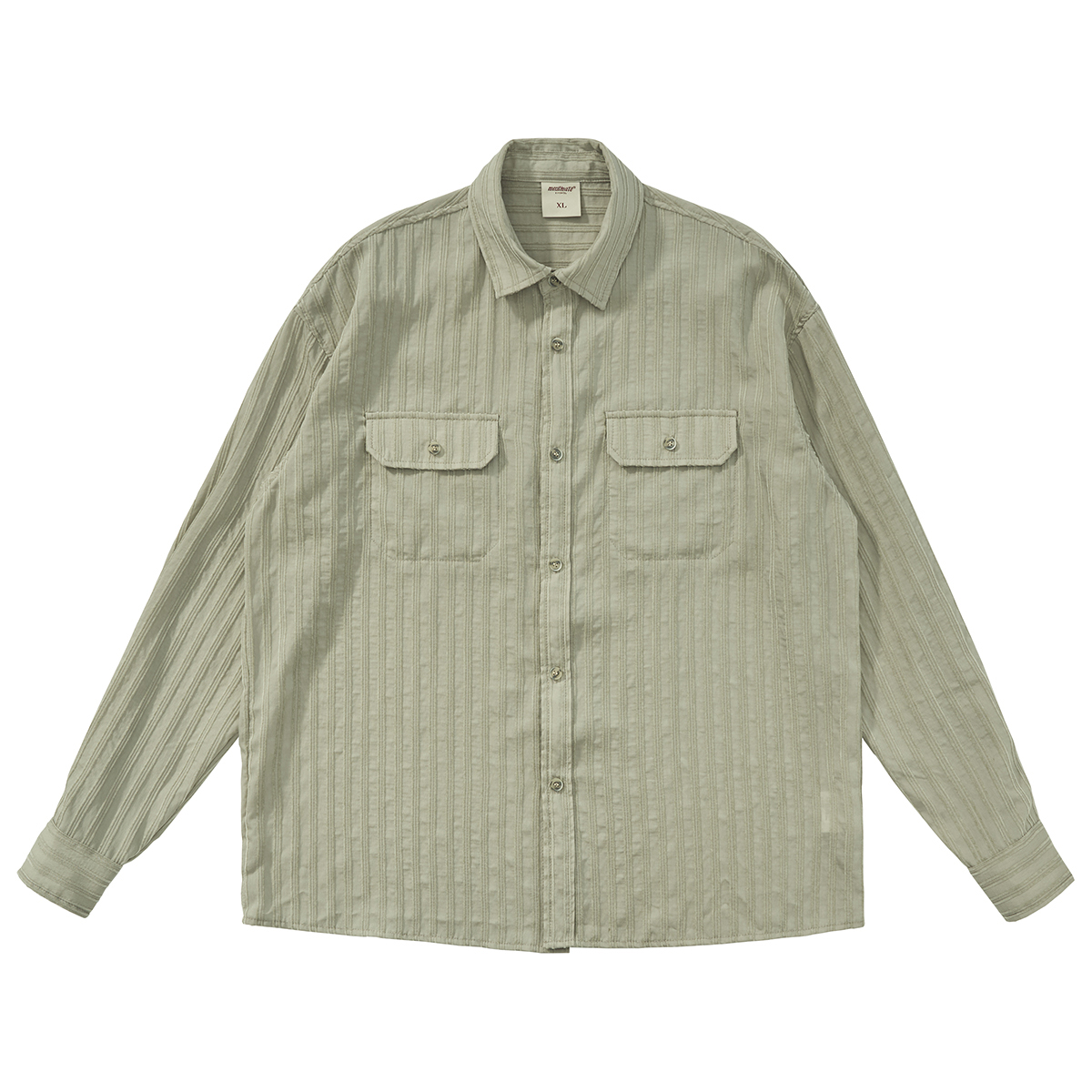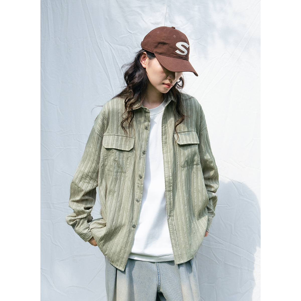 Mentmate 25AW 复古工装风肌理感条纹长袖衬衫男 秋冬做旧色衬衣