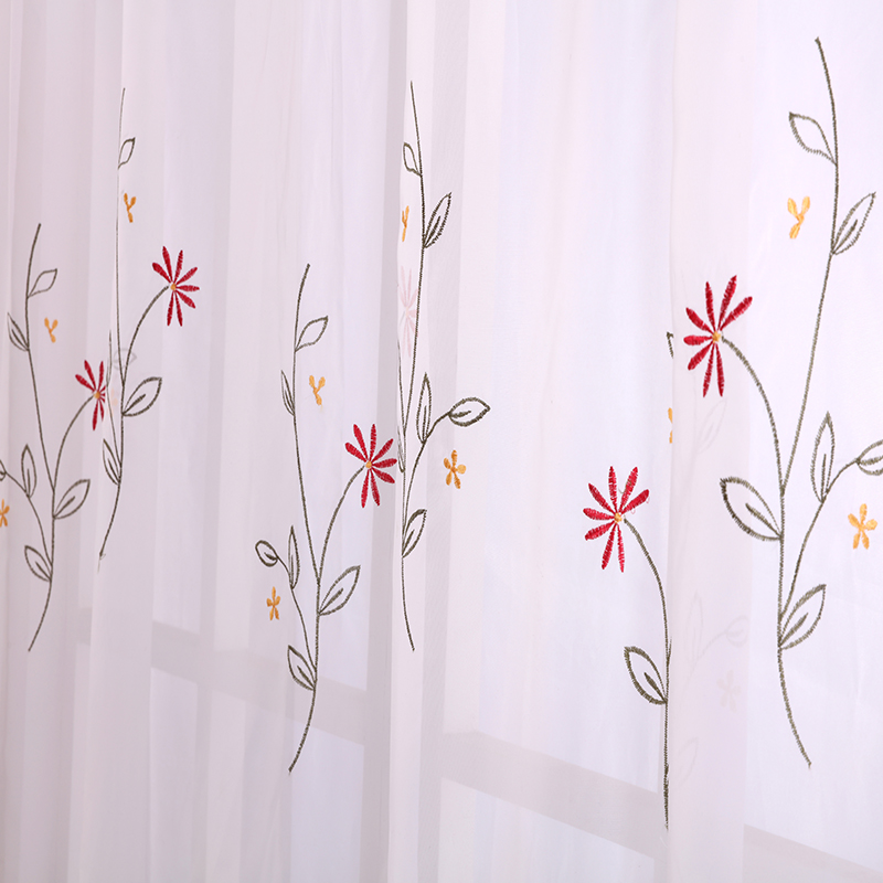 外贸原单出口成品窗帘纱帘刺绣花美式田园阳台飘窗客厅窗纱处理