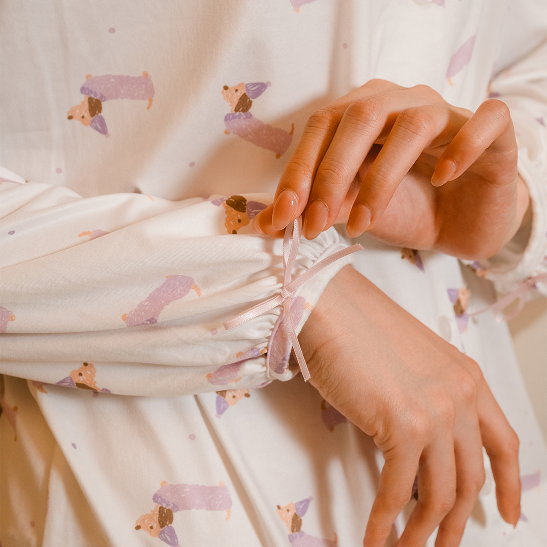 【秋新品】68睡衣女牛奶丝柔软舒适睡裙睡袍可爱娃娃领腊肠狗印花