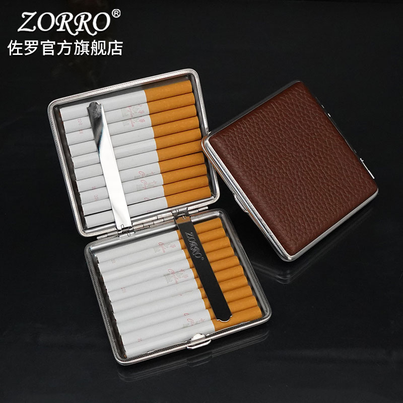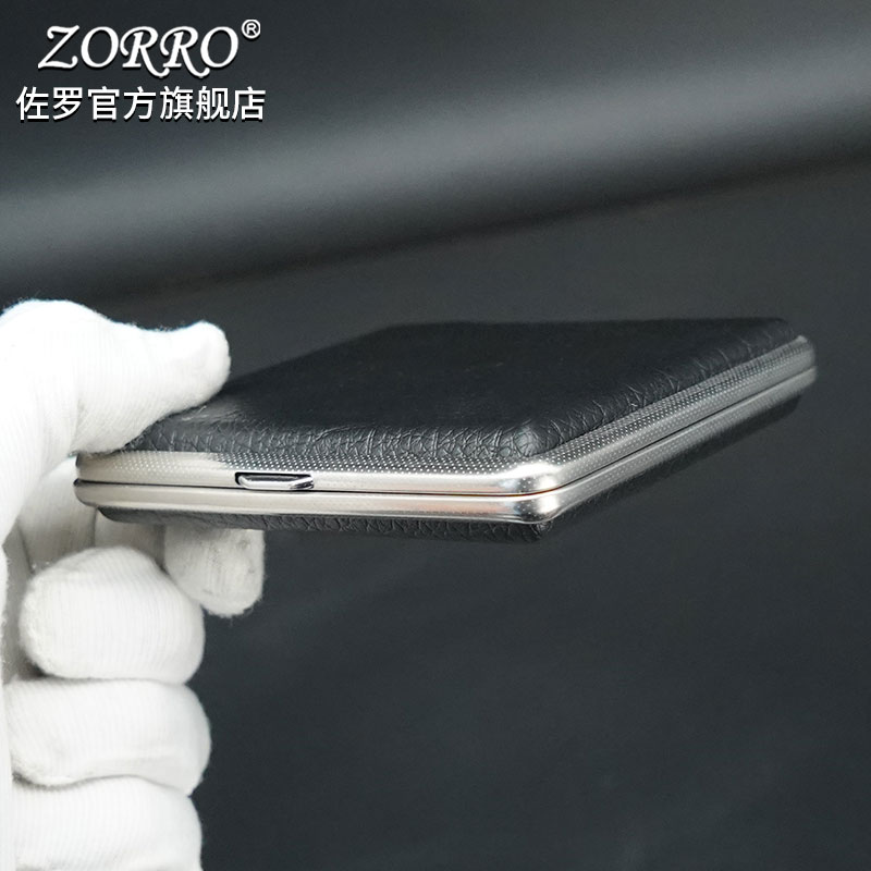 zorro佐罗正品高档便携香烟盒男士皮质简约20支装超薄双弹片烟盒