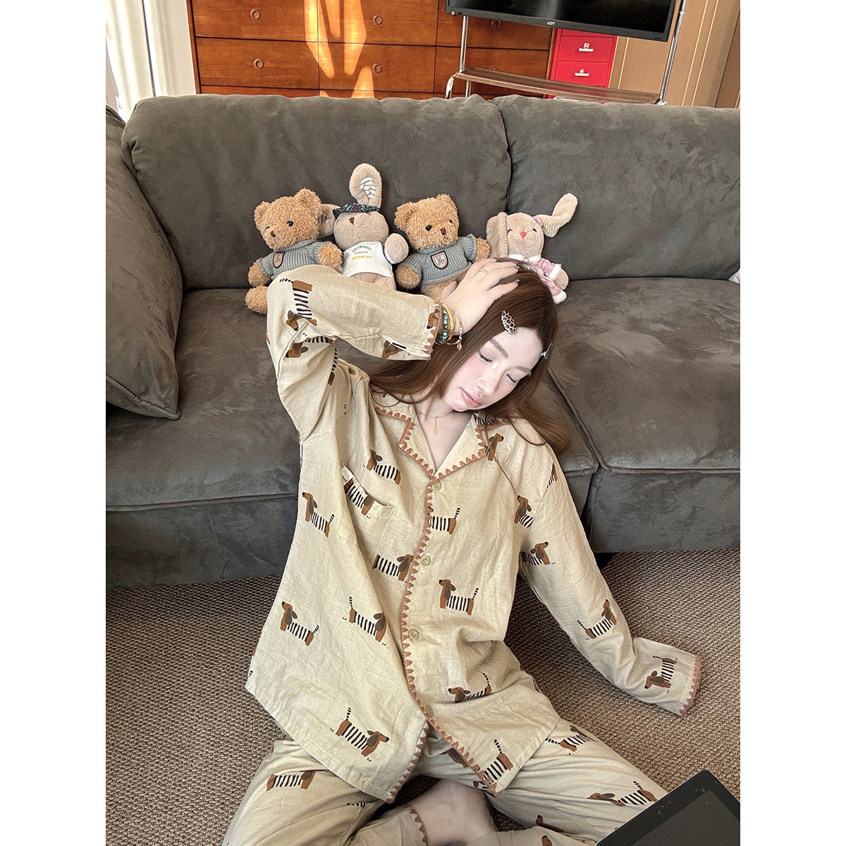 JoyceBra 2026新款卡通小狗睡衣套装女春夏宽松舒适可外穿家居服