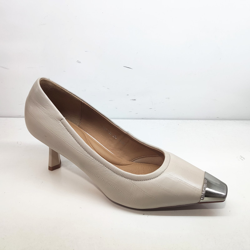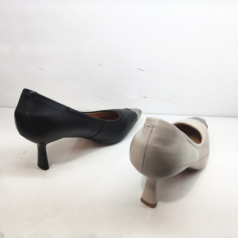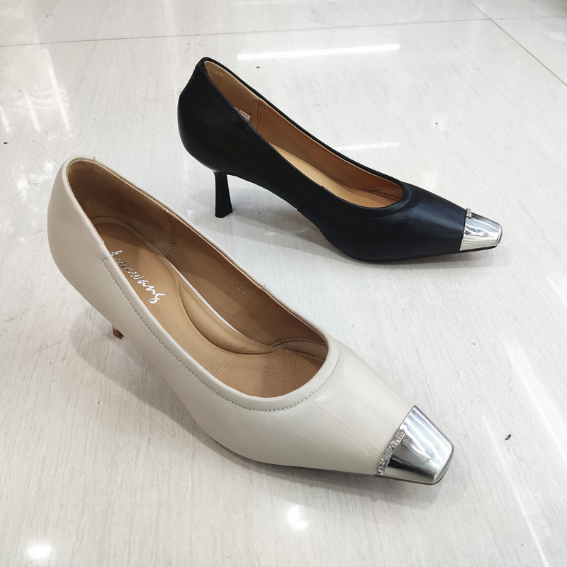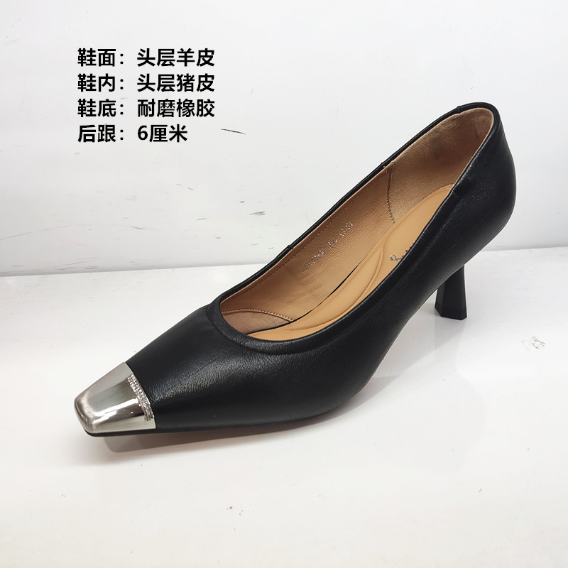 商场2025春秋新款羊皮粗跟单鞋高跟小方头真皮女鞋蝴蝶结优雅浅口