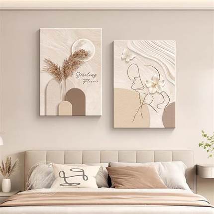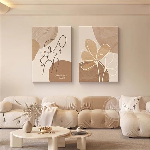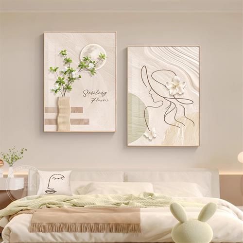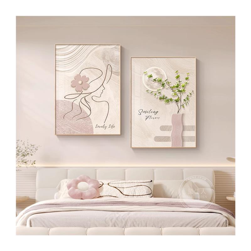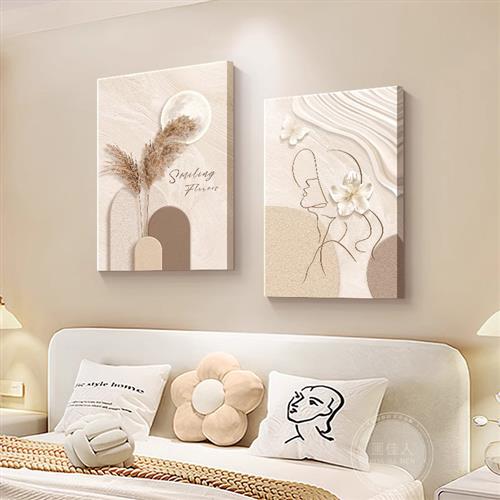 现代简约卧室床头装饰画抽象线条人物挂画奶油风原木风客厅墙壁画
