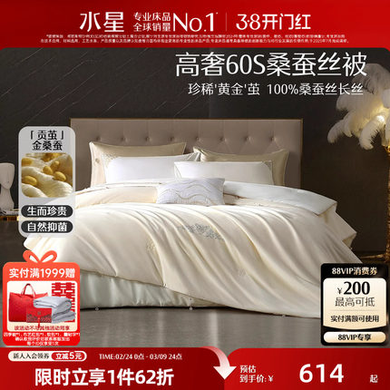 水星家纺100%桑蚕丝被子A类抗菌蚕丝被芯冬被保暖陪嫁结婚庆喜被