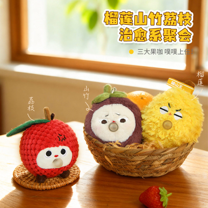 乐吉儿吐泡泡农场水果捏捏毛绒玩偶榴莲山竹挂件解压玩具生日礼物