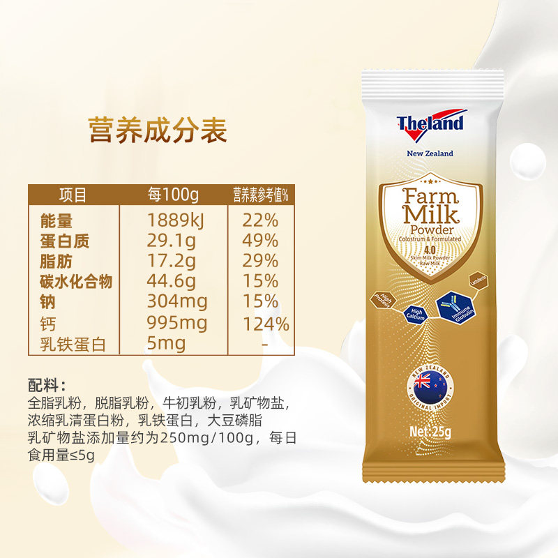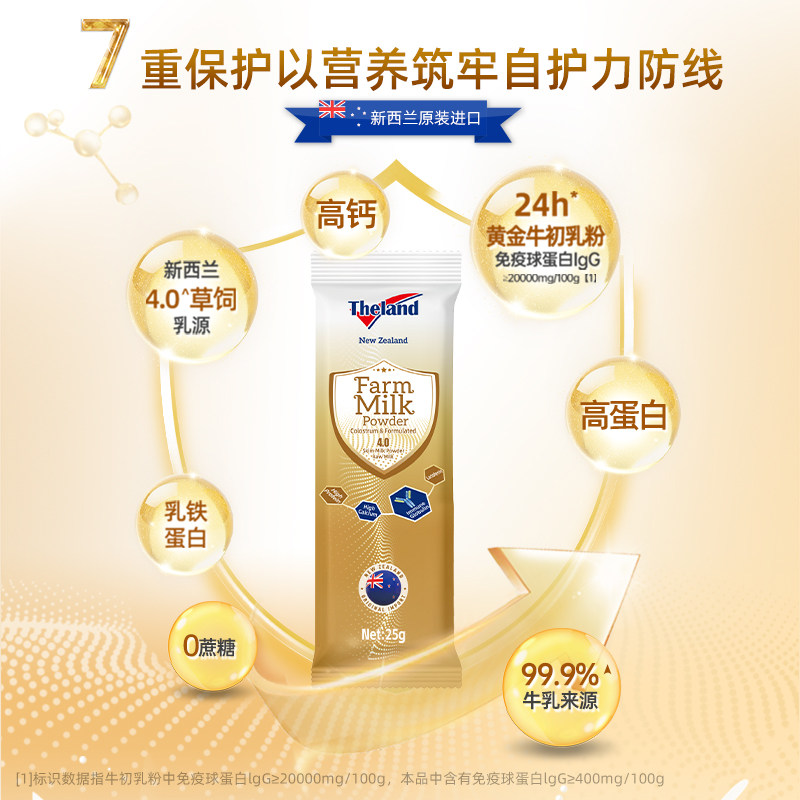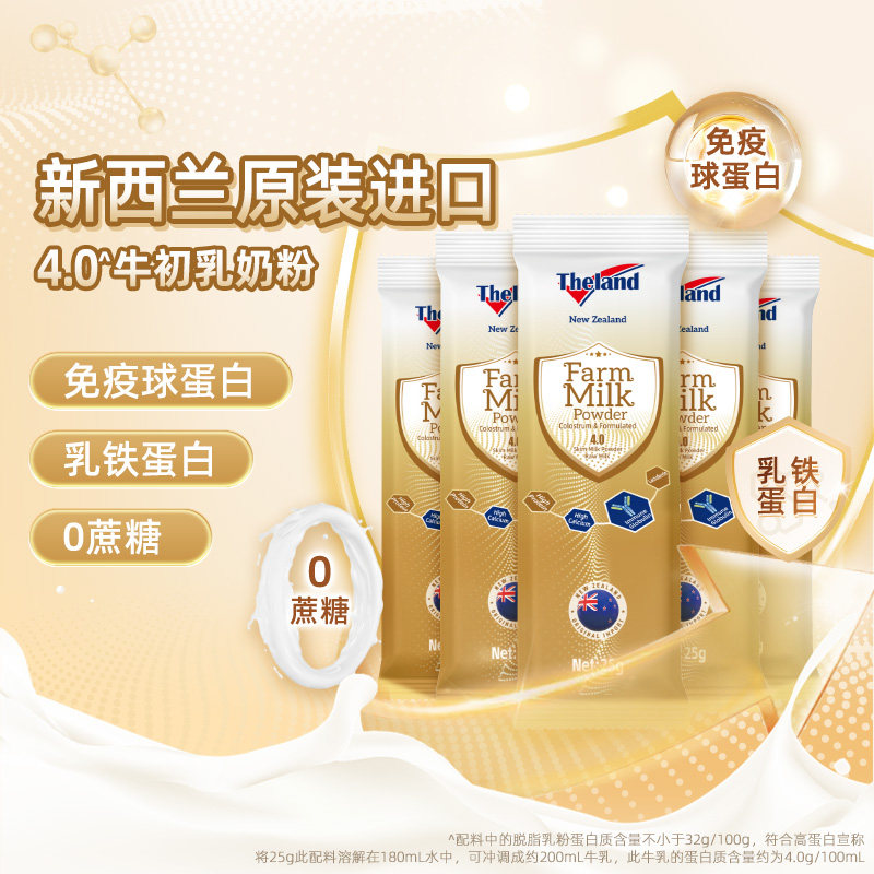 新西兰进口纽仕兰4.0高蛋白牛初乳高钙成人老年25g*5条调制乳奶粉