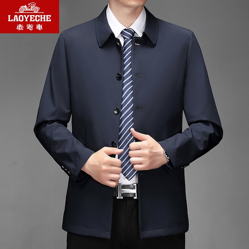 老爷车秋装夹克衫男中老年扣子外套男士翻领上衣爸爸厚款商务男装