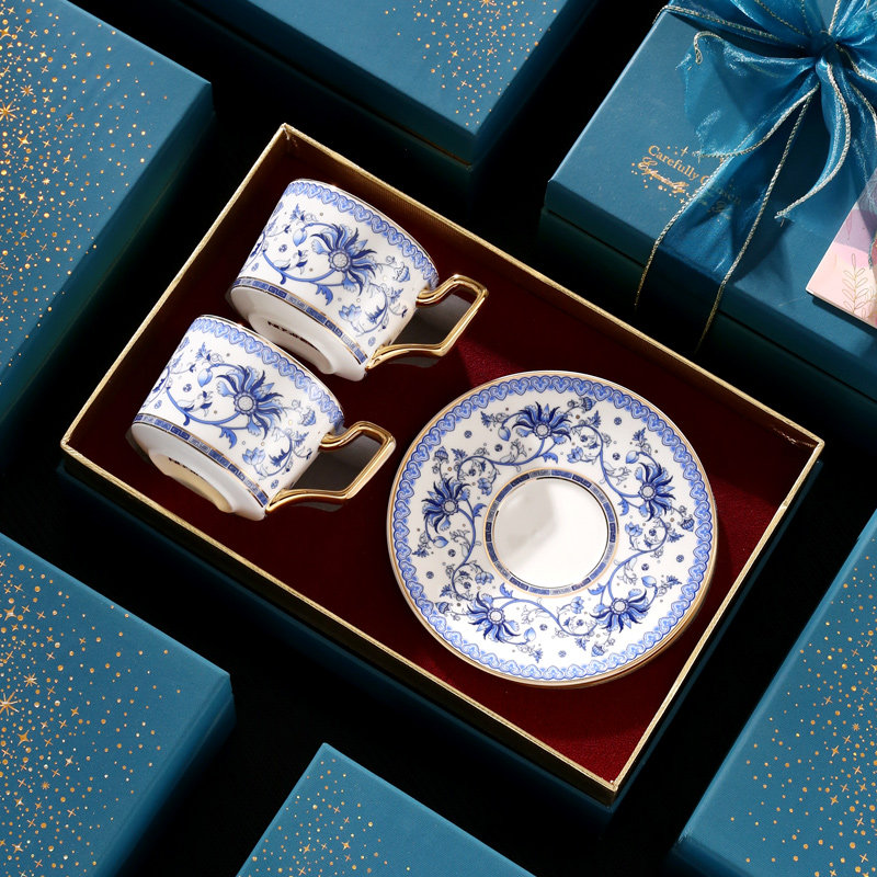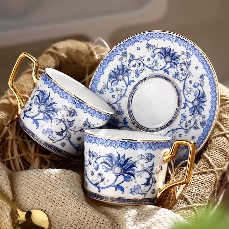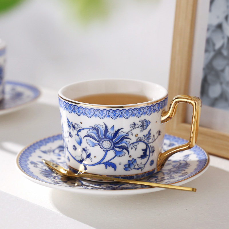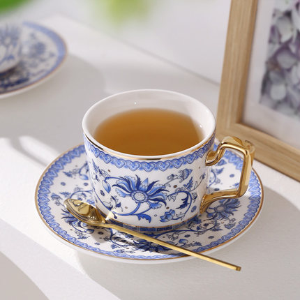 中式青花瓷陶瓷咖啡杯套装咖啡杯碟小奢华精致茶杯咖啡杯带勺