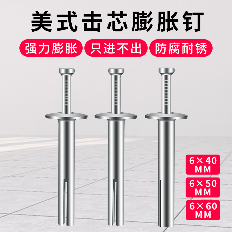 锋狼美式击芯膨胀钉内膨胀罗螺丝打入式敲击式快速拉爆壁虎膨胀钉
