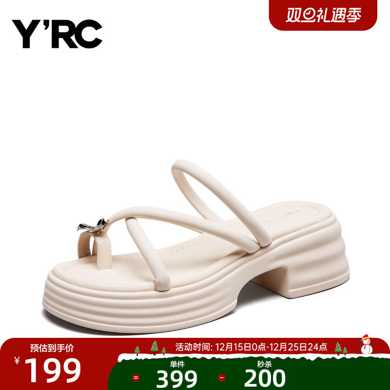 YRC凉鞋拖女夏外穿精致新款罗马厚底粗跟休闲细带夹趾凉鞋