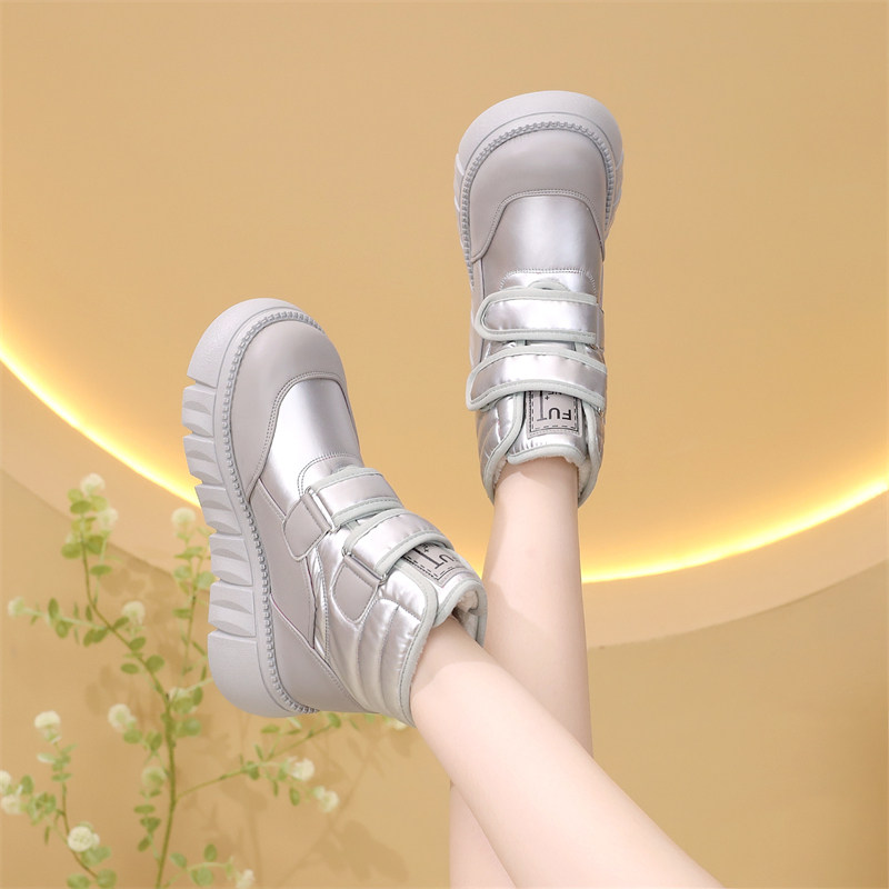 厚底雪地靴女2025年冬季新款加绒户外面包鞋防滑魔术贴防水棉靴子