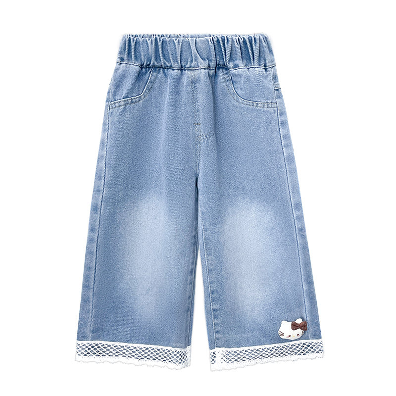 秋上新女童牛仔裤洋气宽松阔腿裤女宝宝春秋季百搭可爱直筒长裤子