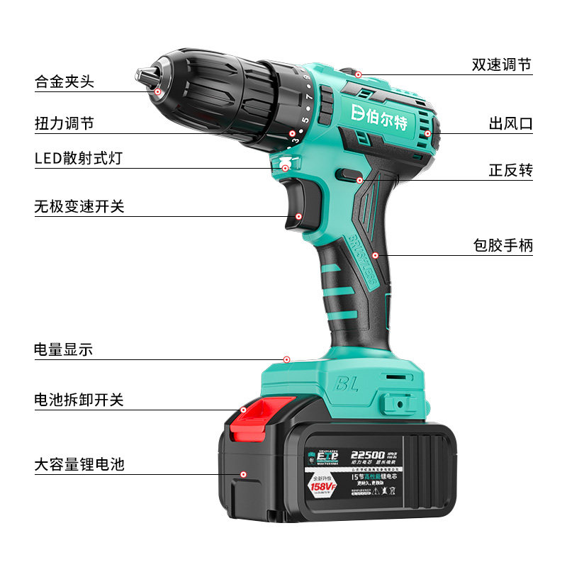 伯尔特手电钻家用小型电动螺丝刀无刷锂电手钻手枪钻充电式冲击钻
