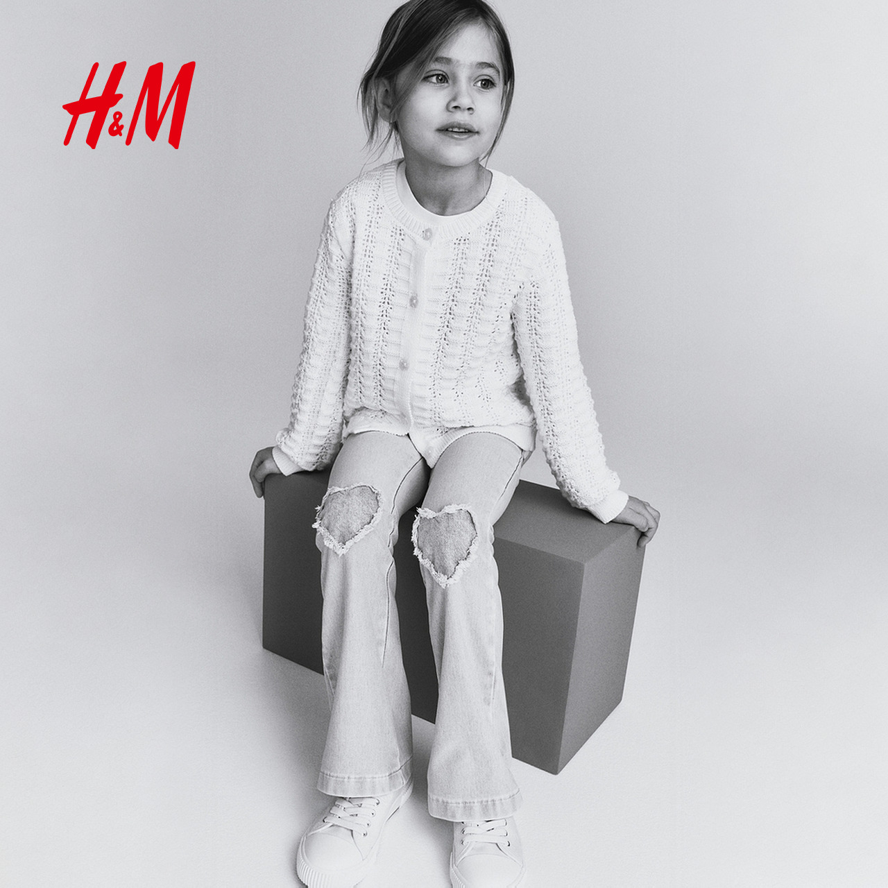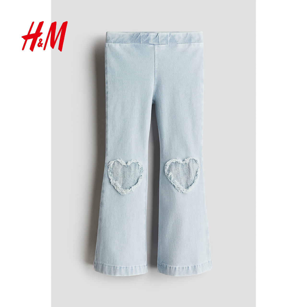 HM童装儿童女童牛仔裤秋新款松紧腰爱心喇叭宽松洋气长裤1272095