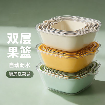 双层洗菜盆沥水篮八件套