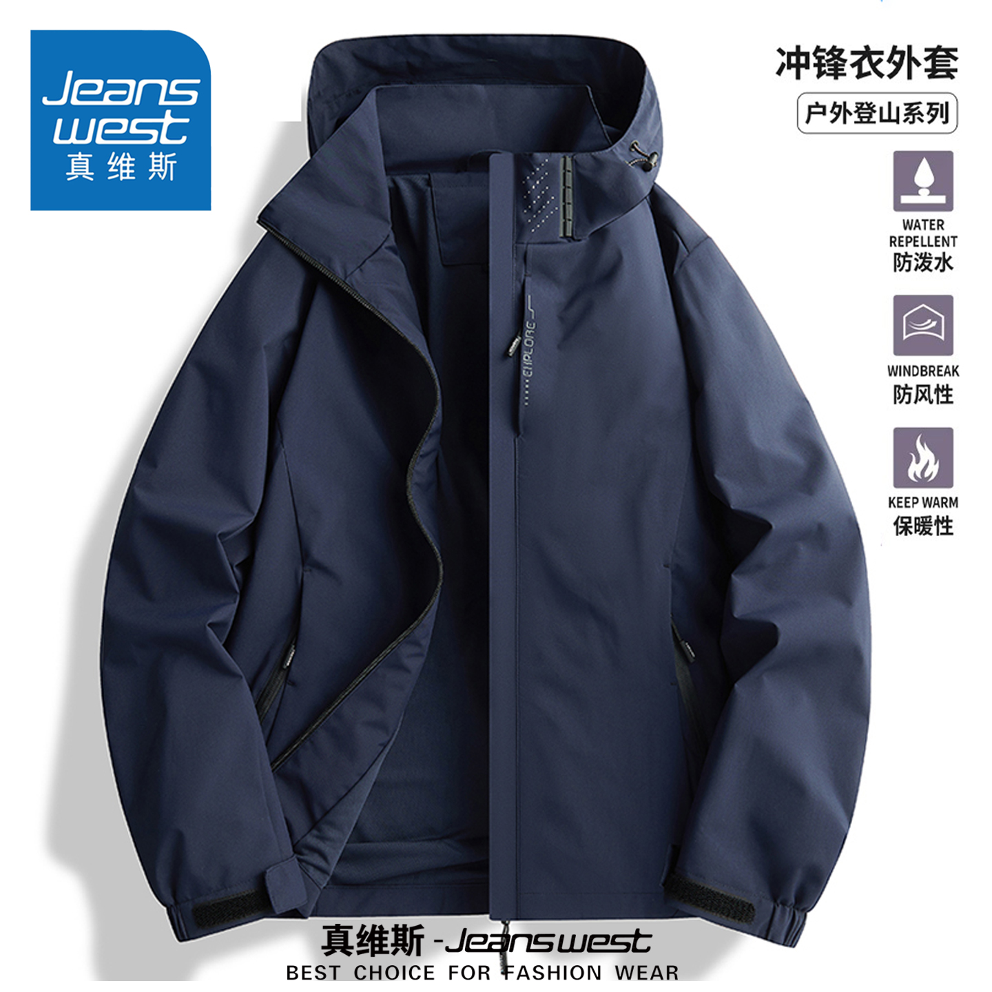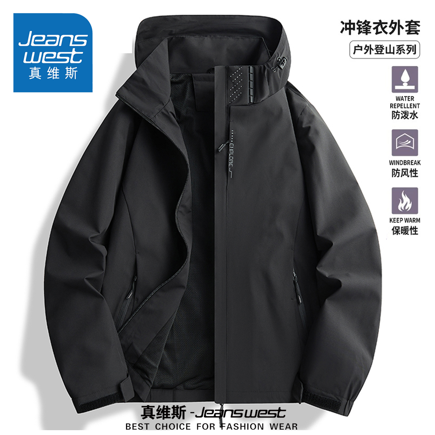 真维斯三合一可拆卸冲锋衣外套男女款秋冬季宽松百搭三防登山夹克
