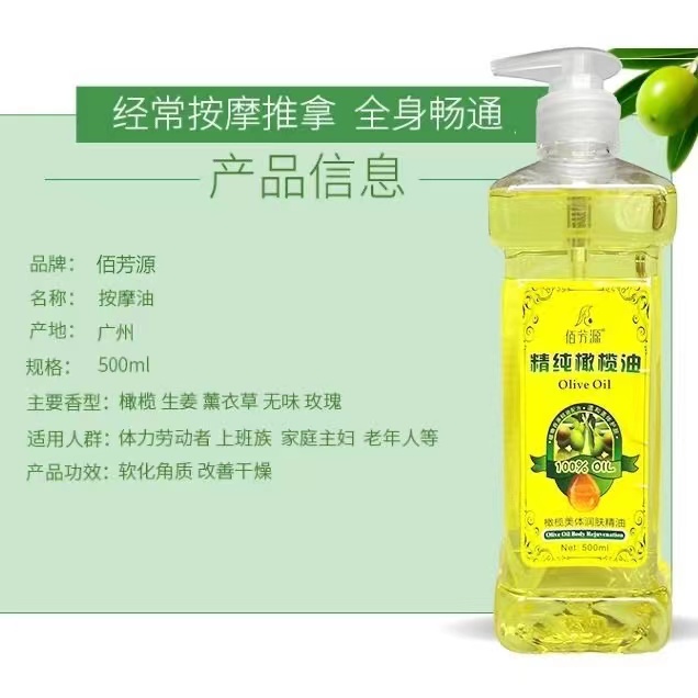 佰芳源橄榄按摩精油全身体通经络开背推油腿部玫瑰推拿刮痧油精纯