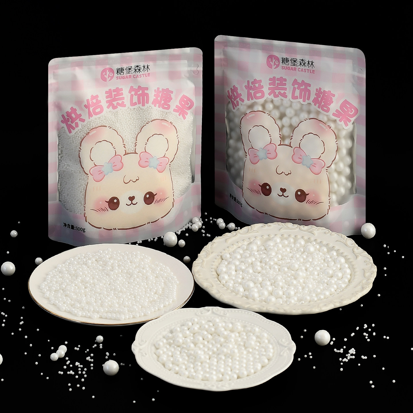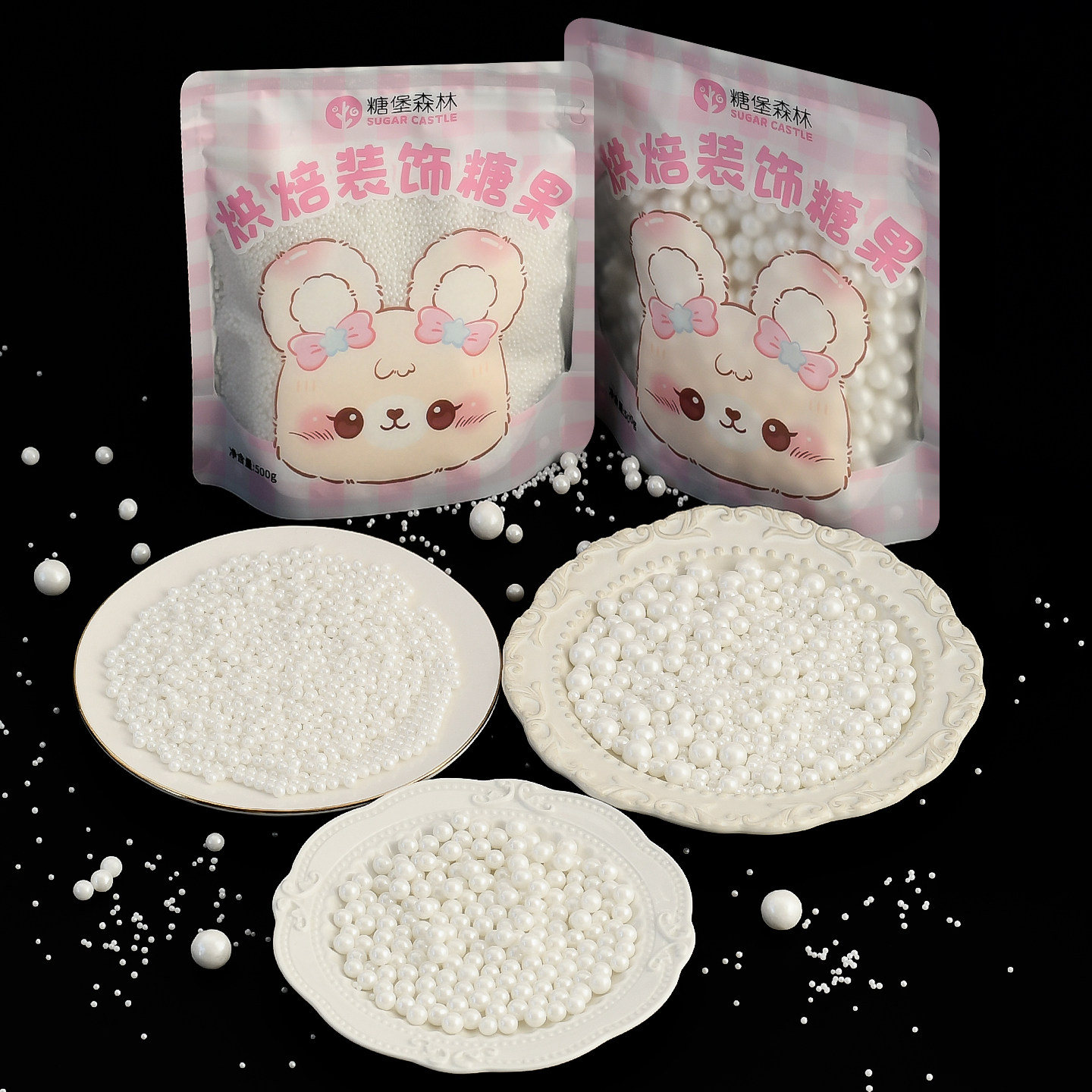 新年白色糖珠烘培蛋糕装饰品珍珠糖白珠圆珠糖彩珠冰淇淋装饰原料