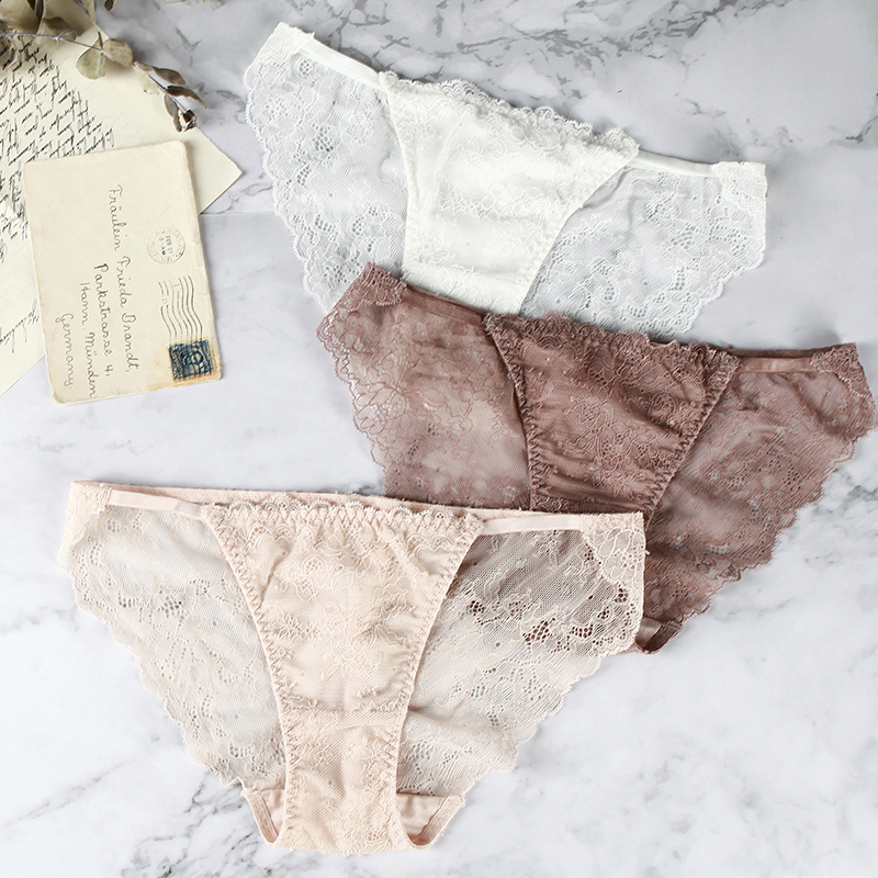 Nita妮塔真丝内裤女100%桑蚕丝法式性感蕾丝低腰透气无痕三角裤