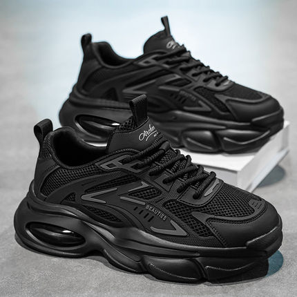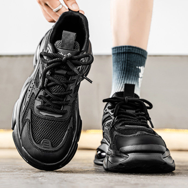 男鞋秋季冬季厚底厨房防滑休闲运动耐磨上班工作黑武士老爹劳保鞋