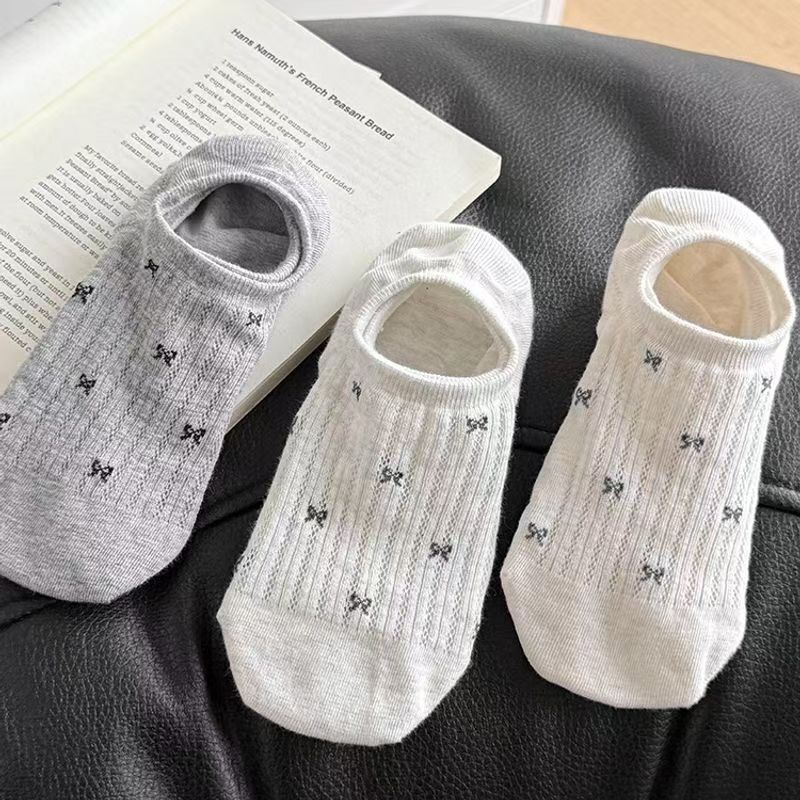miu风女士蝴蝶结袜子船袜浅口夏季薄款防滑不掉跟百搭隐形透气袜