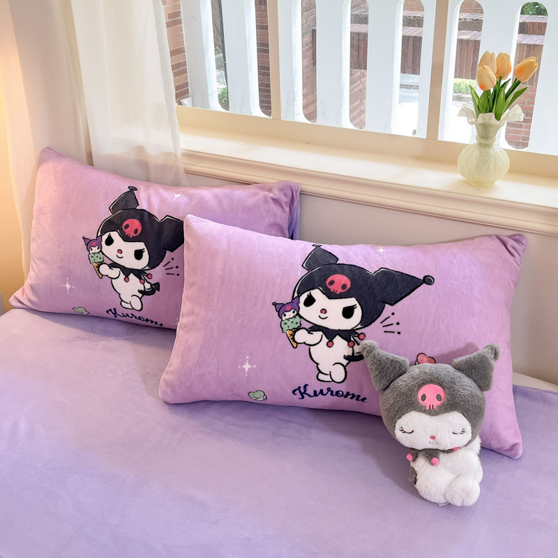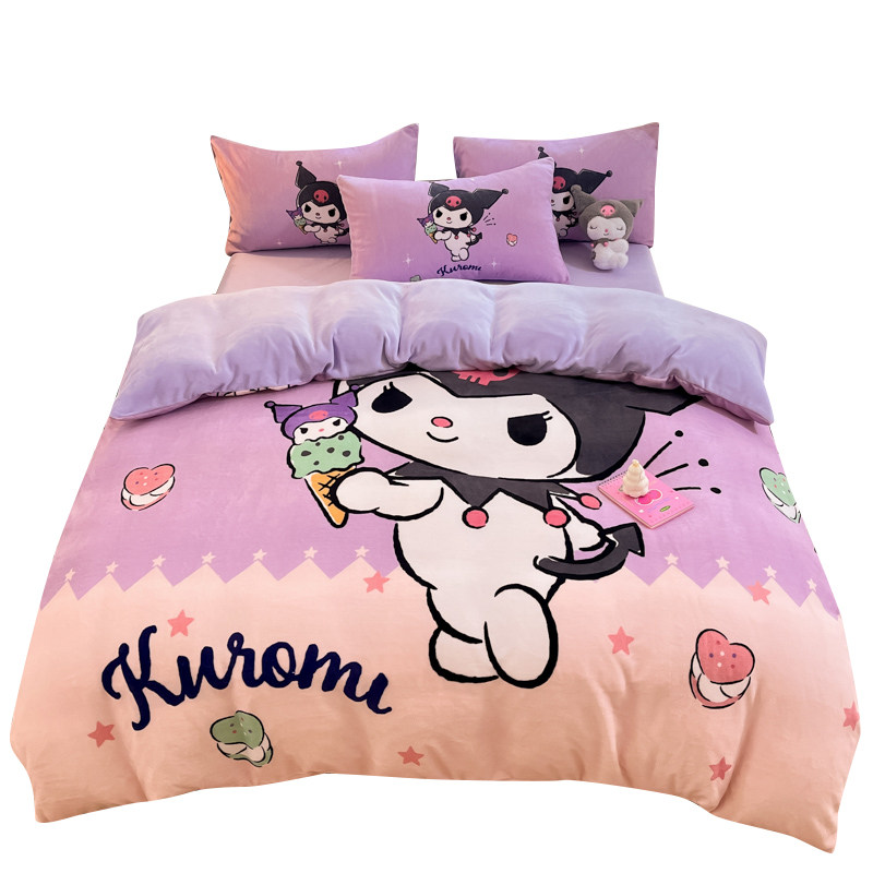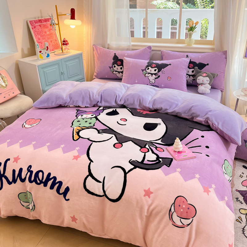 冬季加厚牛奶绒儿童被套单件库洛米加绒被罩珊瑚绒卡通床上四件套