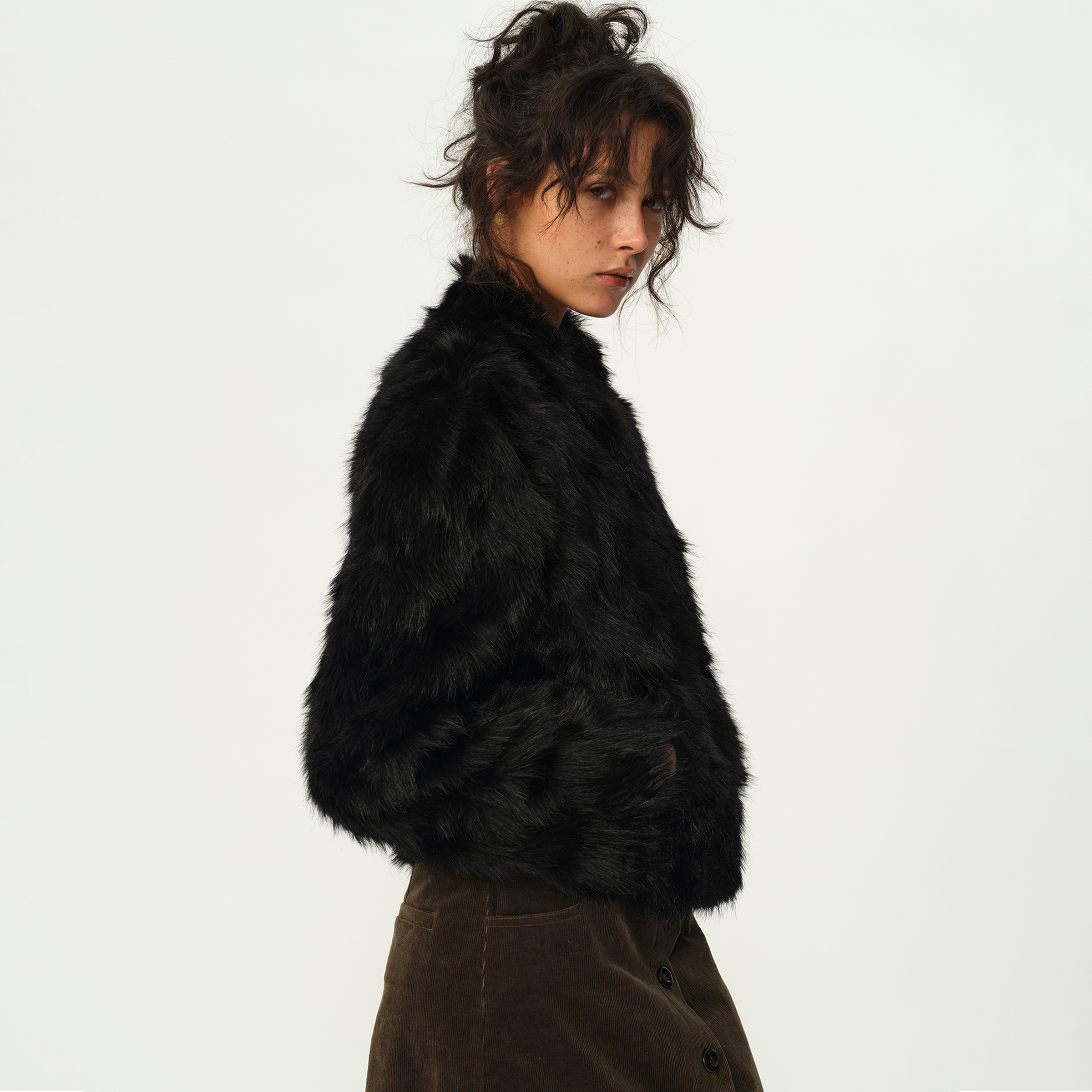 EVISTUB 小湖羊卷毛休闲时髦宽松廓形环保皮草短外套女秋冬